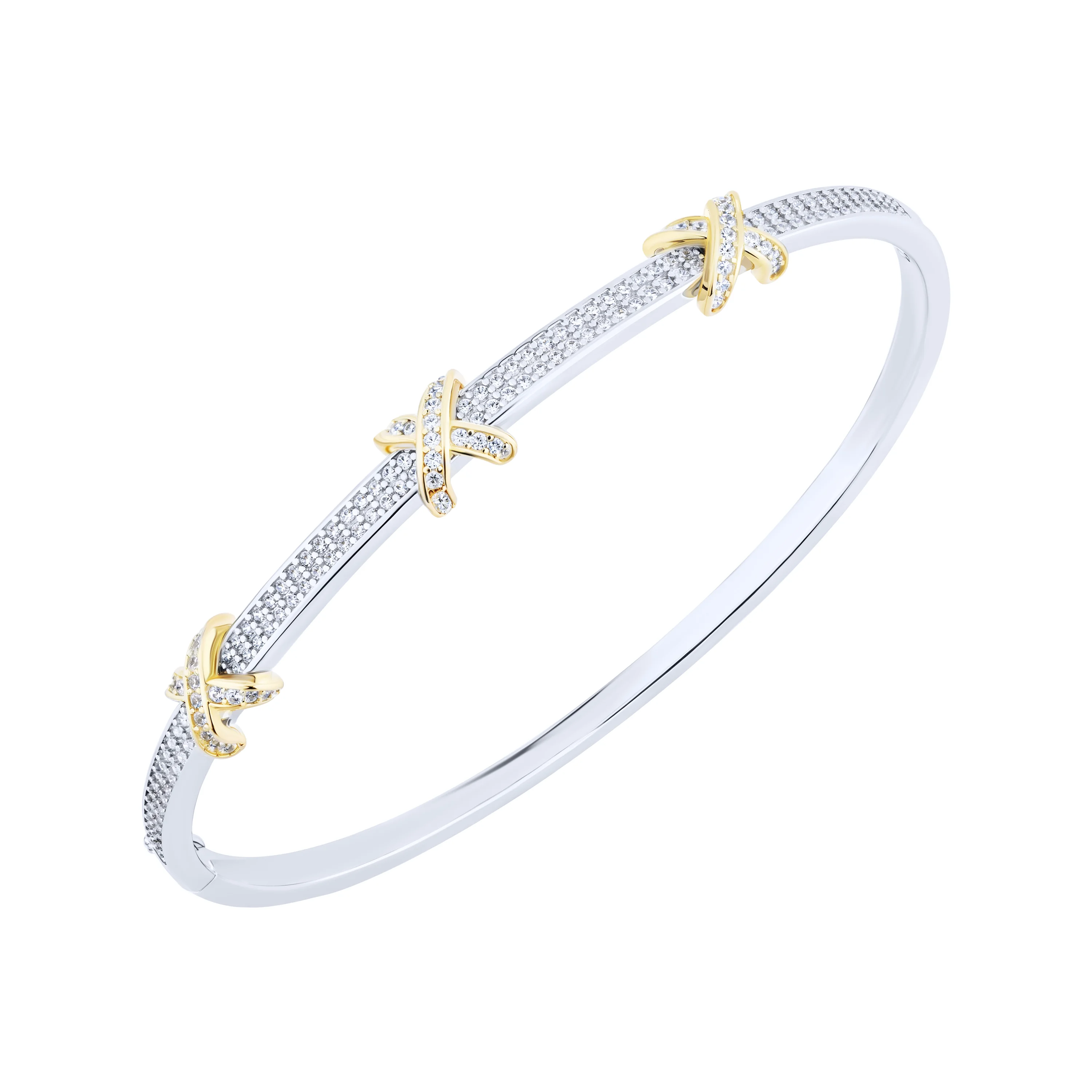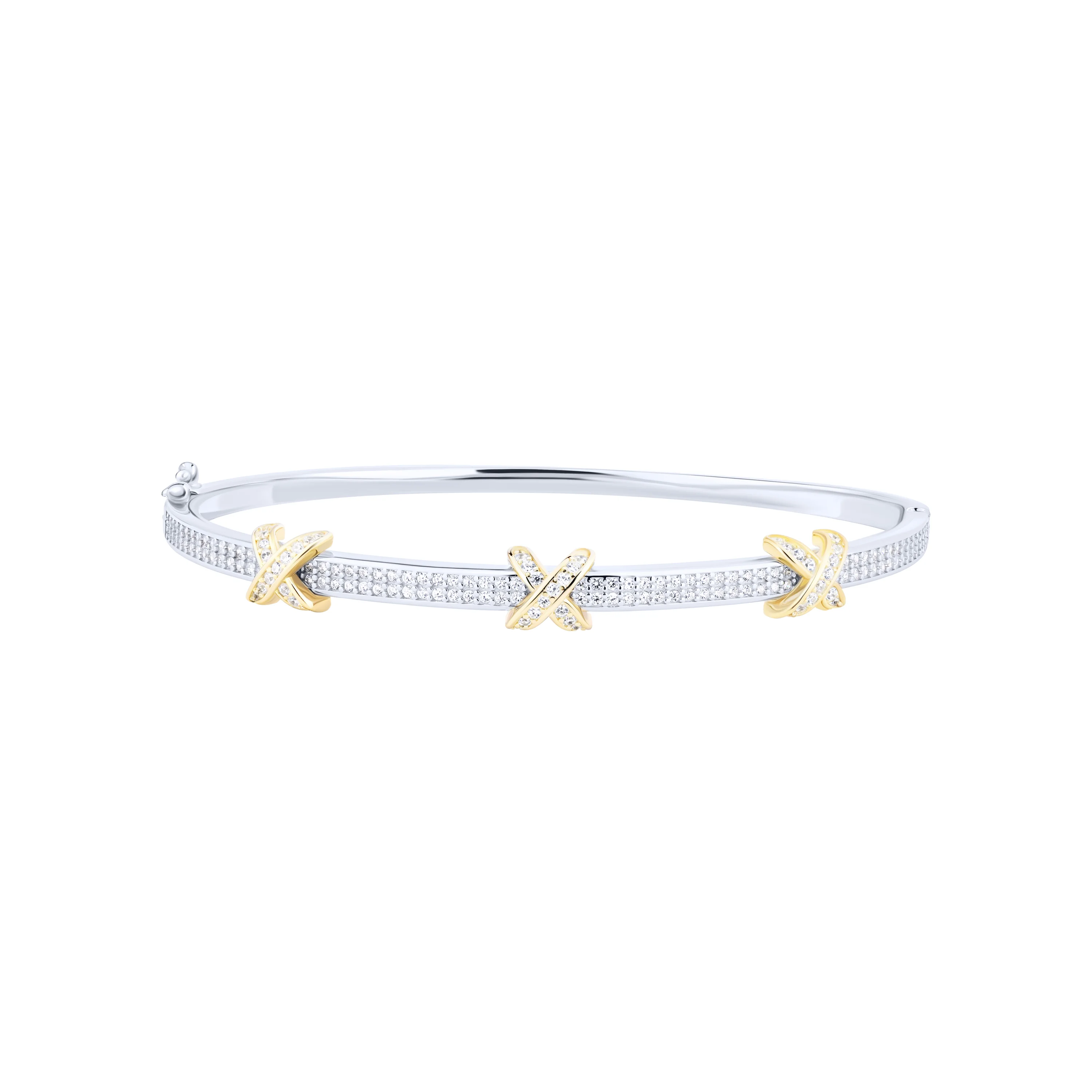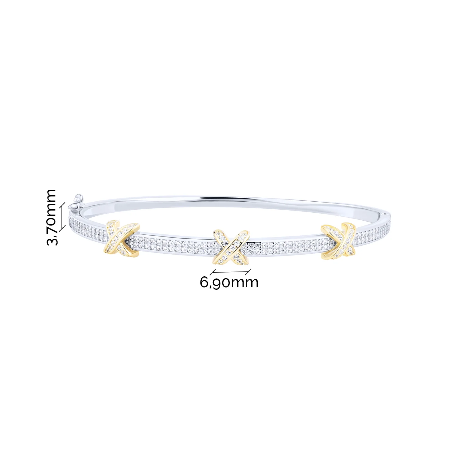 Жесткий браслет из серебра с желтым родированием и с фианиатами - 2132304