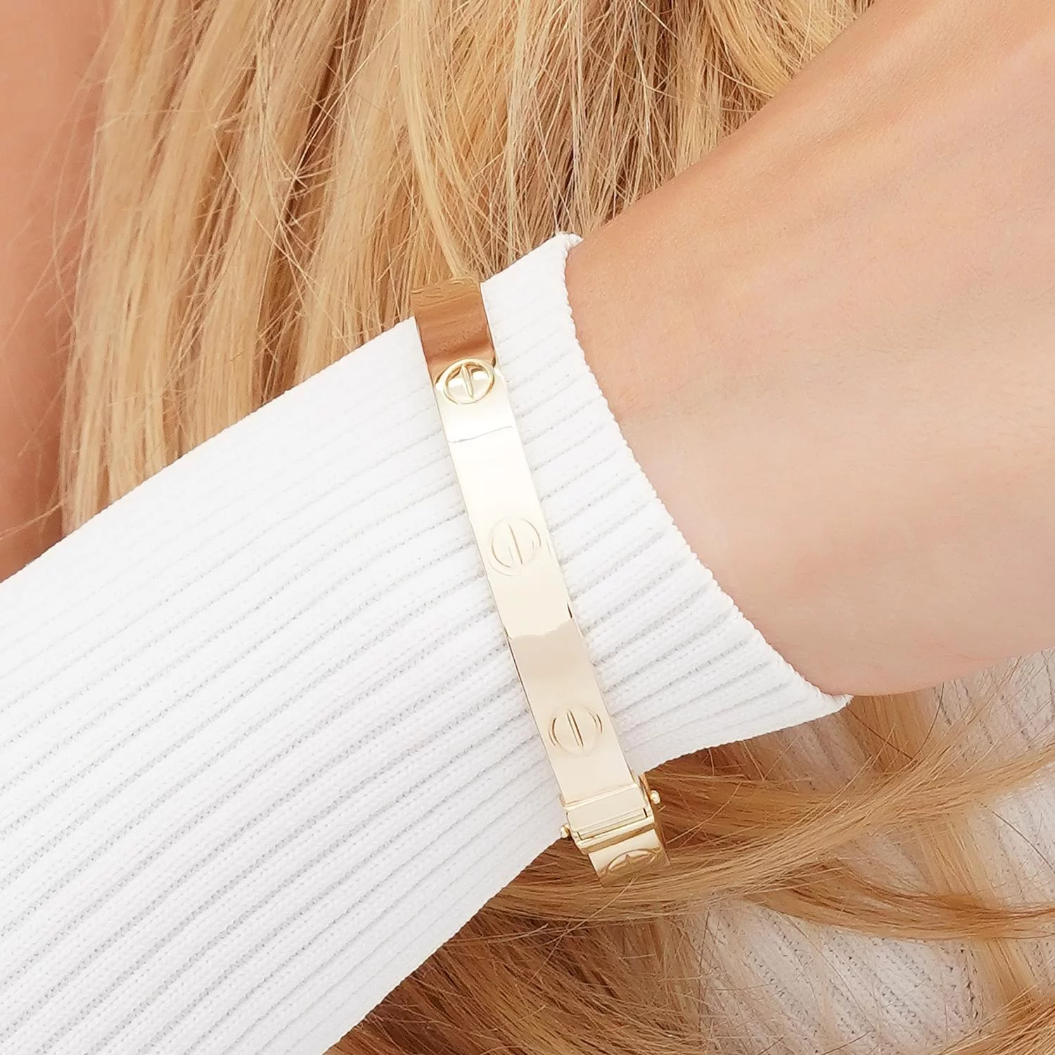 Жесткий браслет "Love" из лимонного золота - 1451414