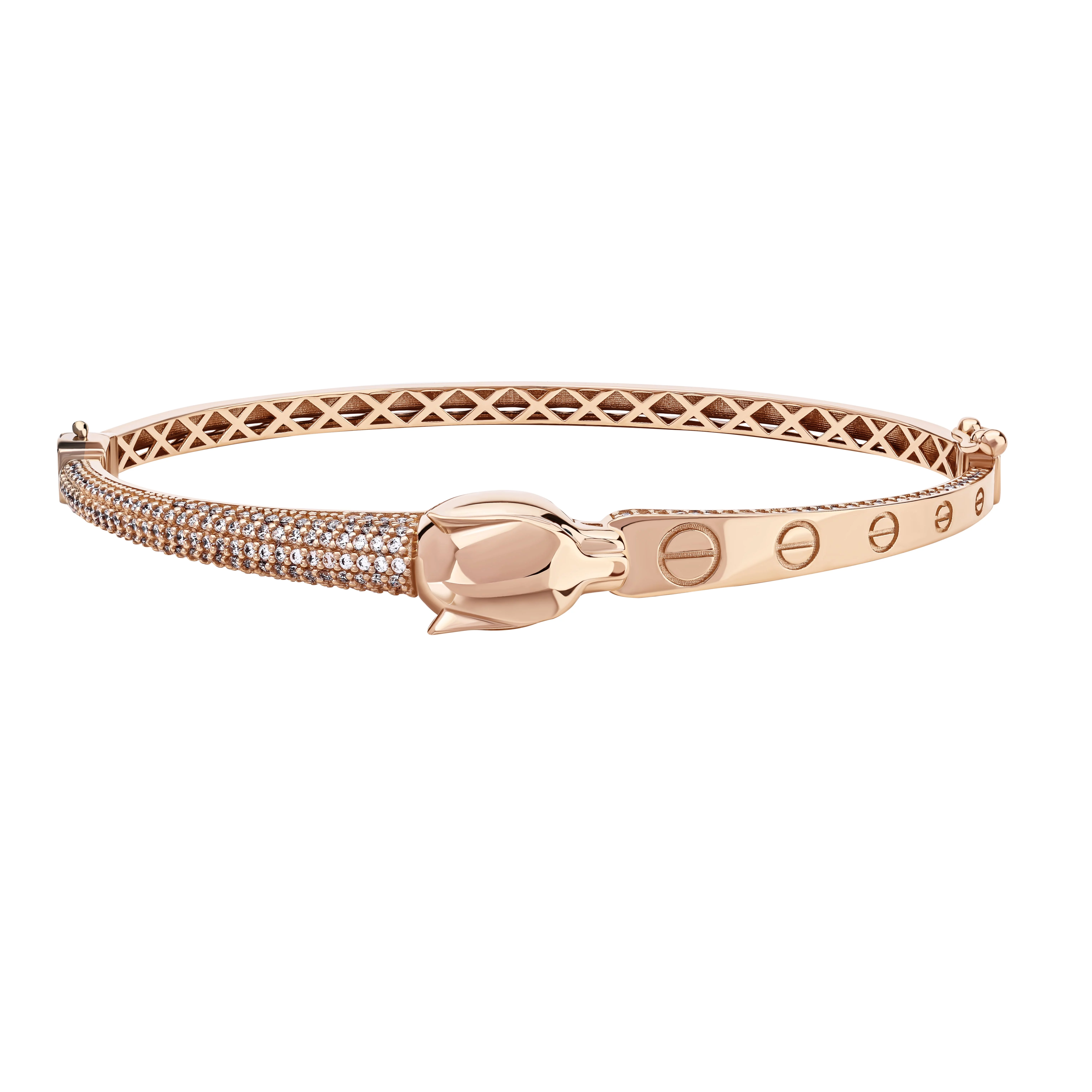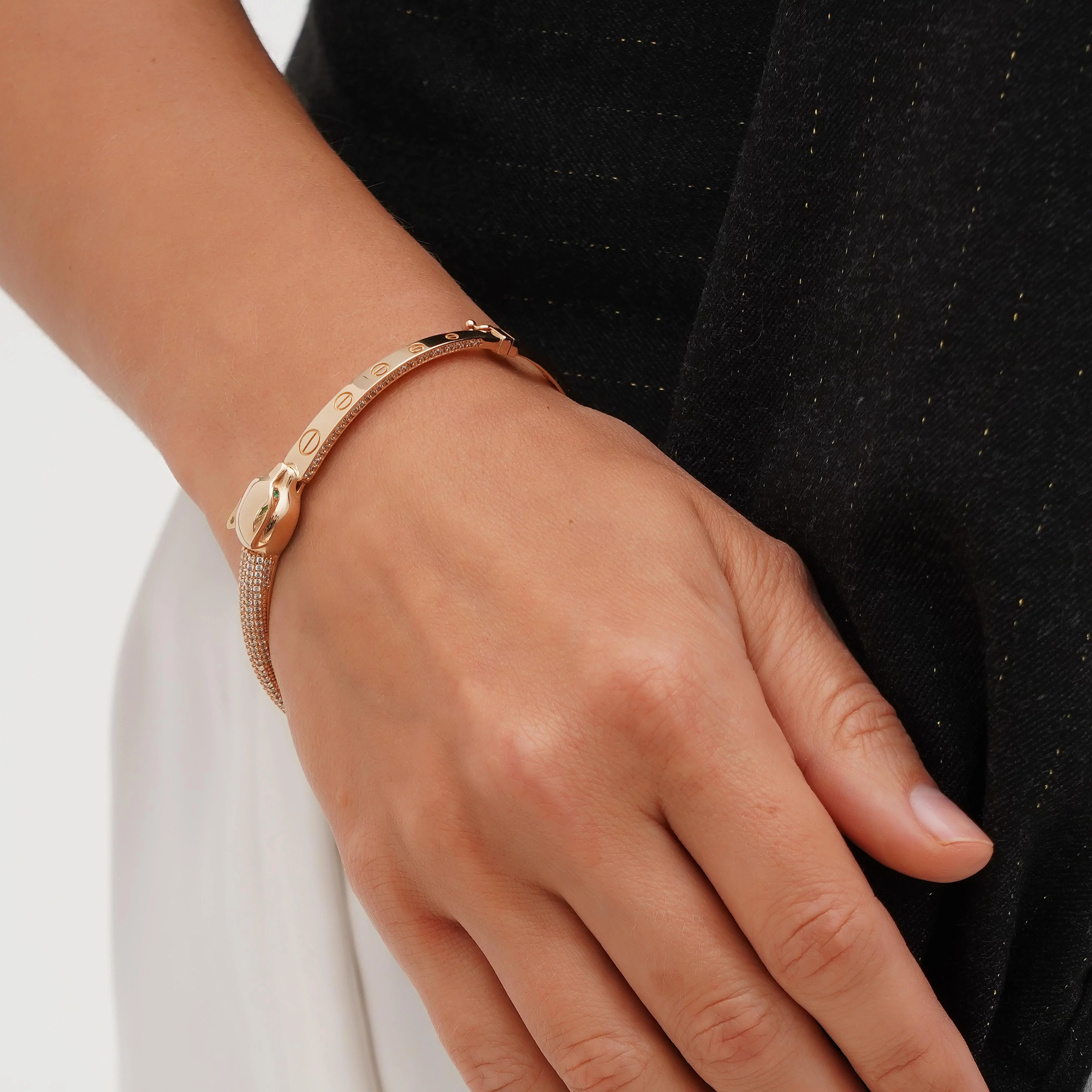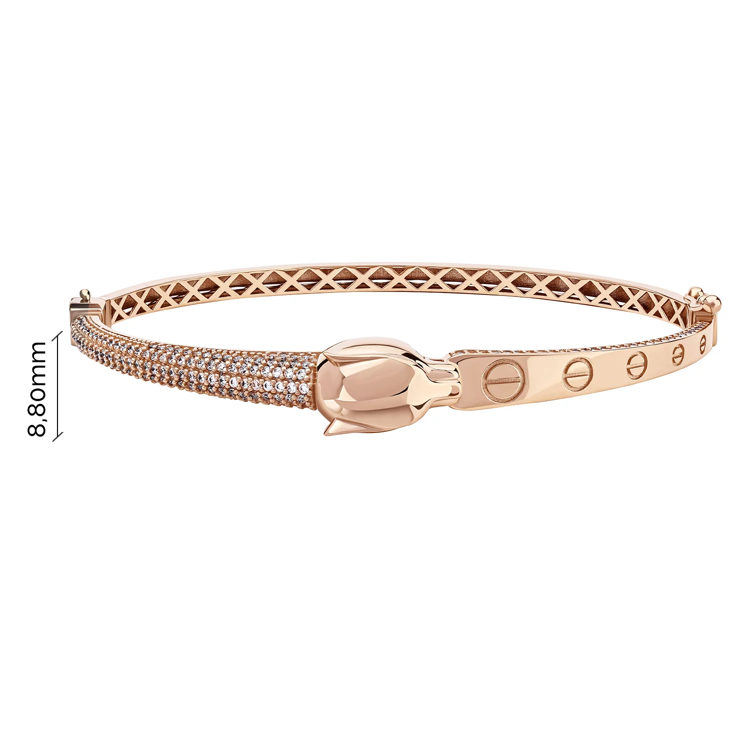 Жесткий браслет "Змея" из красного золота с россыпью фианитов - 1855986