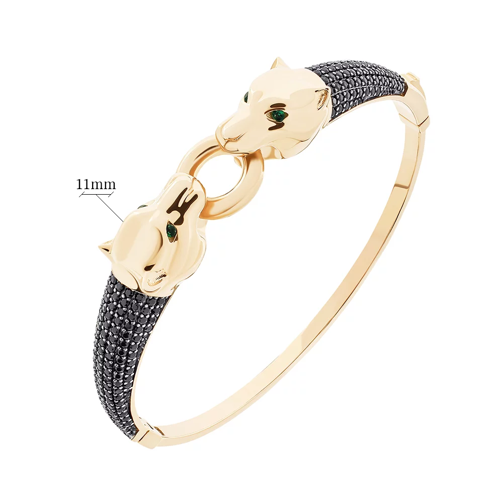 Жесткий браслет "Пантера Love" из красного золота с фианитами - 1747524
