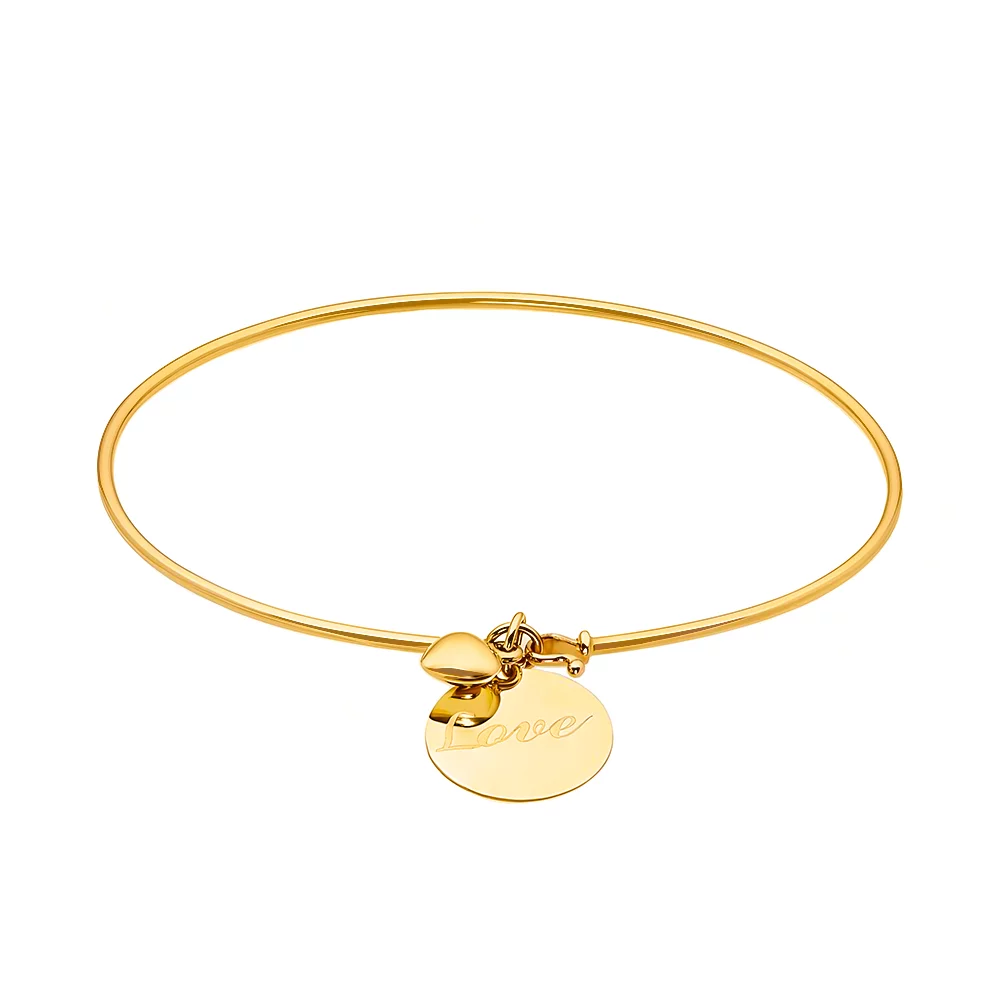 Жесткий браслет с подвеской "Love" из лимонного золота - 1531687