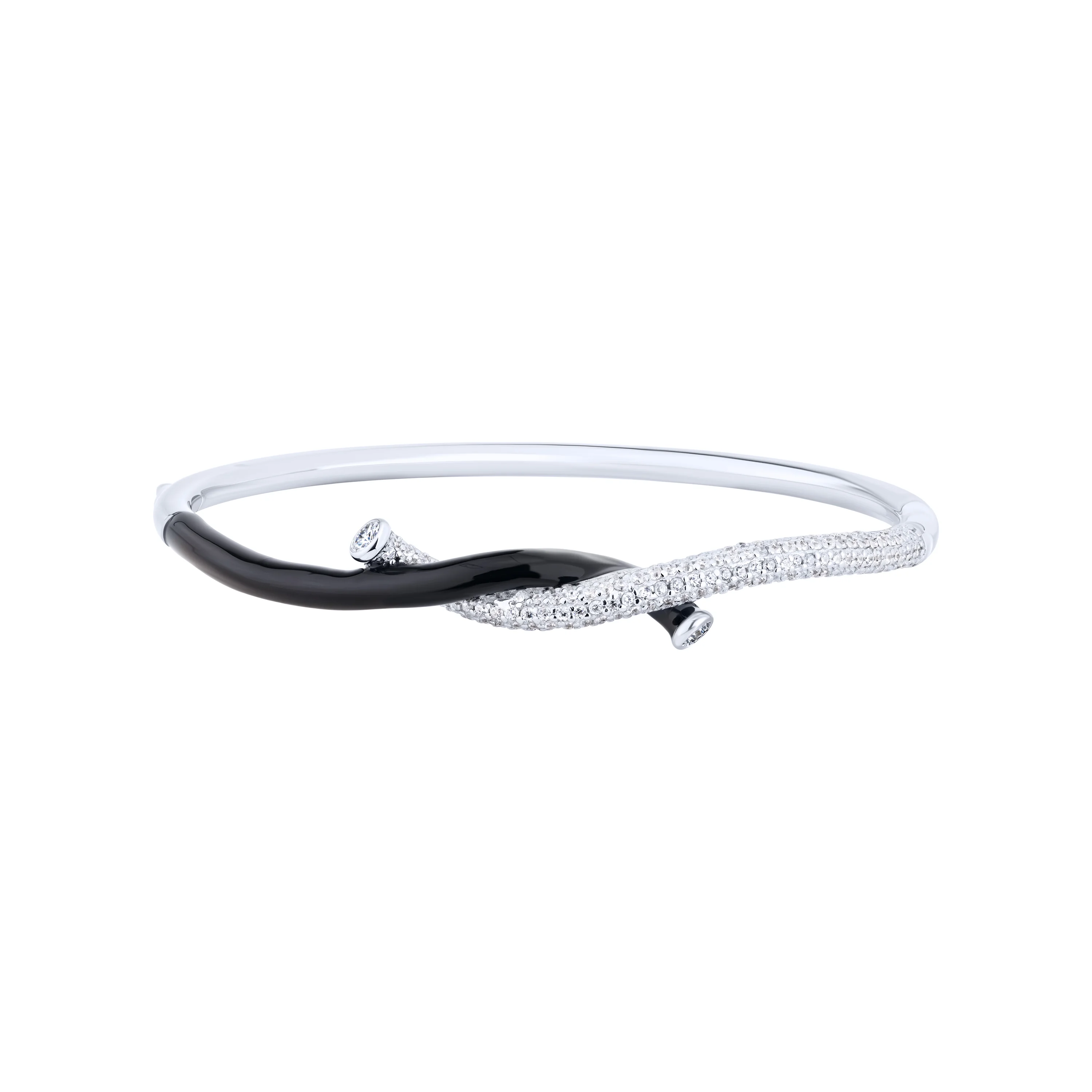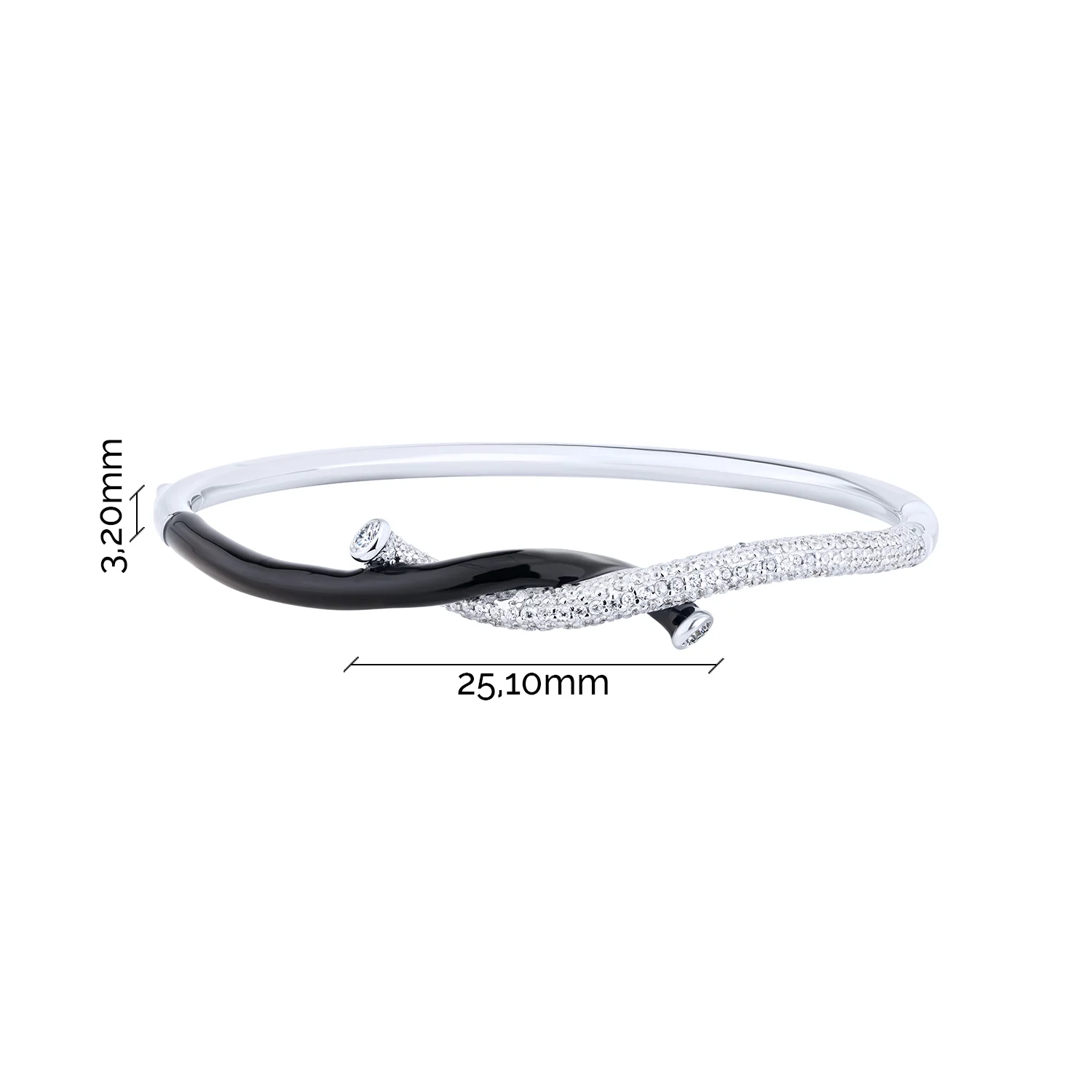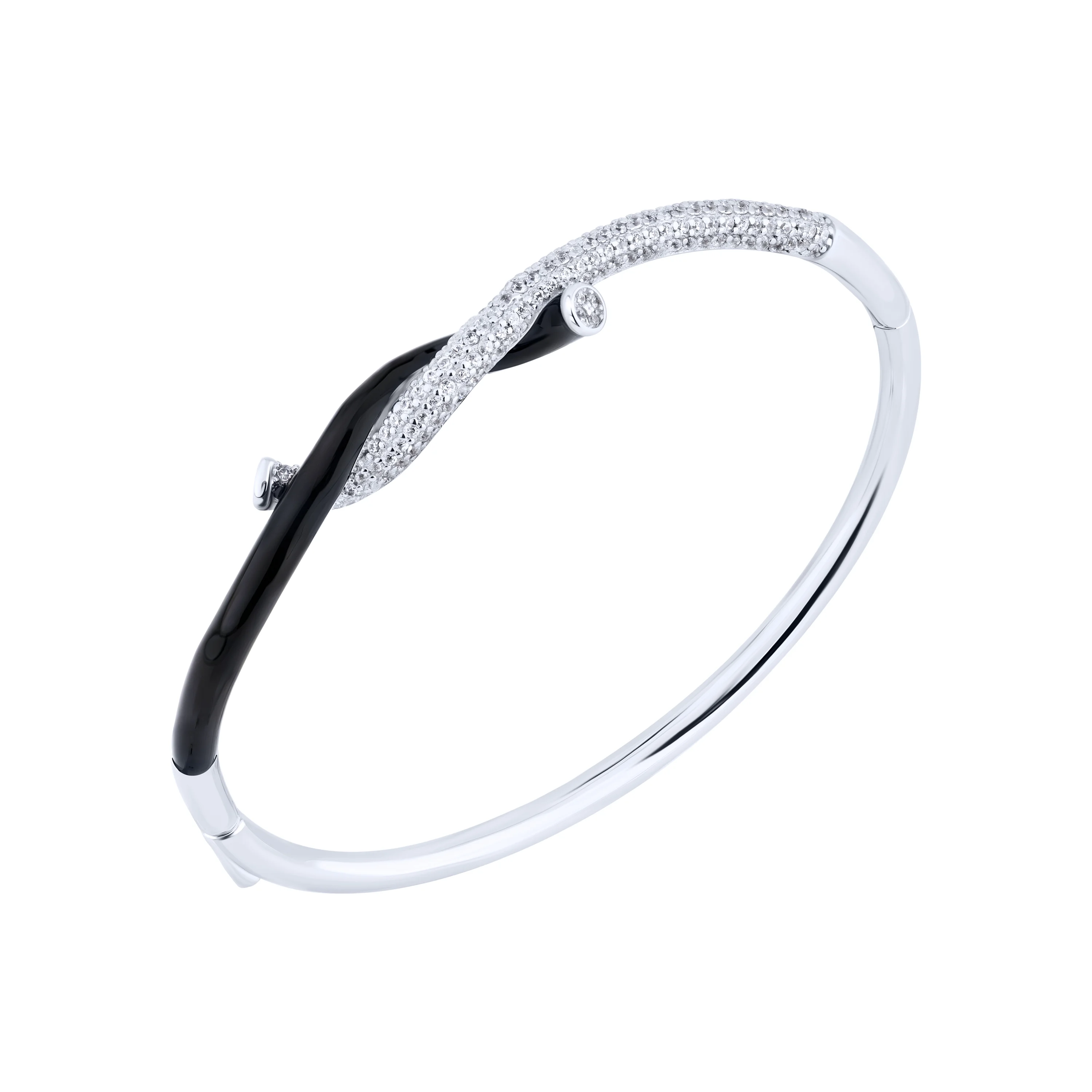Жесткий браслет "Жгут" из серебра с фианитами и ємалью - 2132309