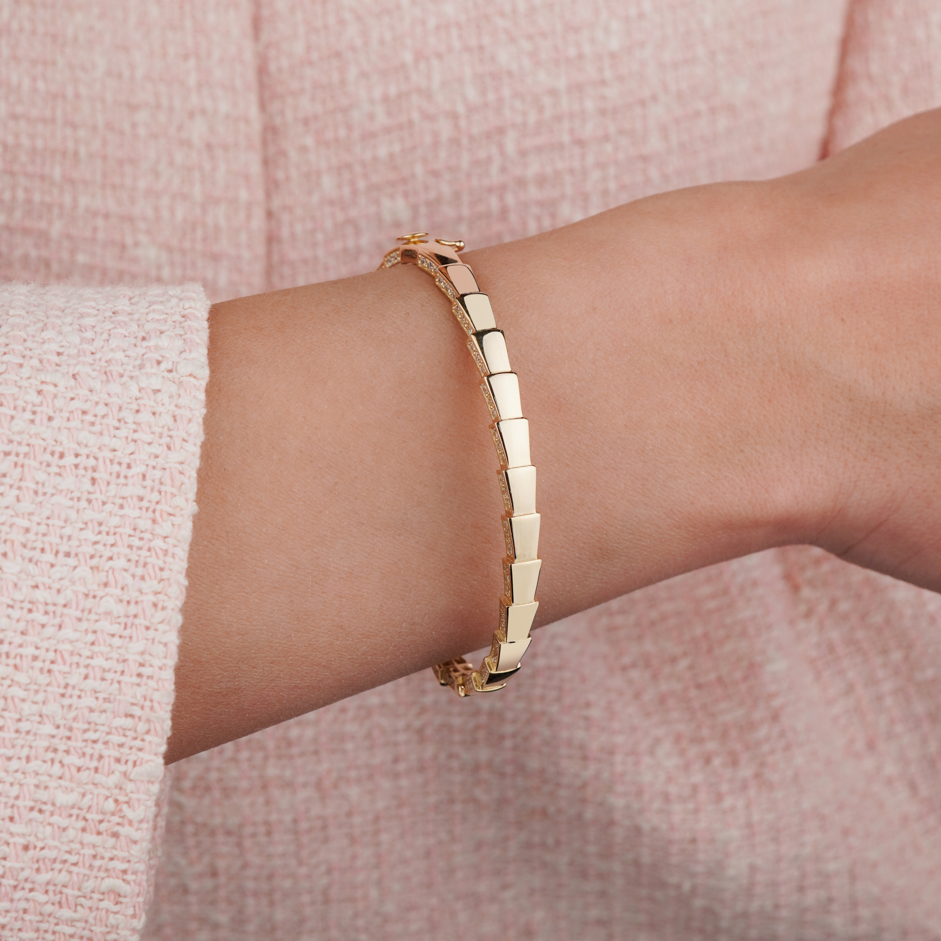 Жесткий браслет "Змея" в красном золоте с фианитами - 2217863