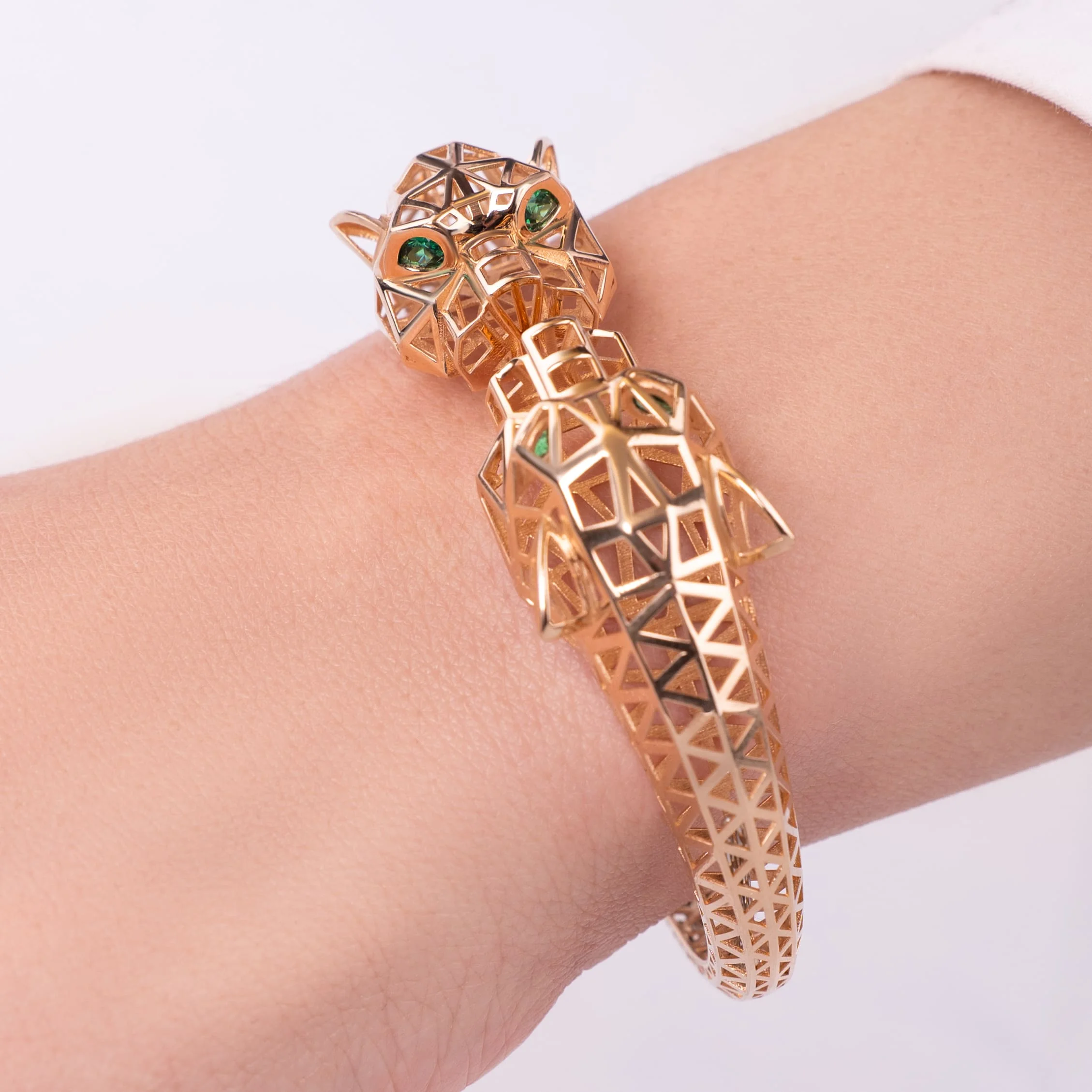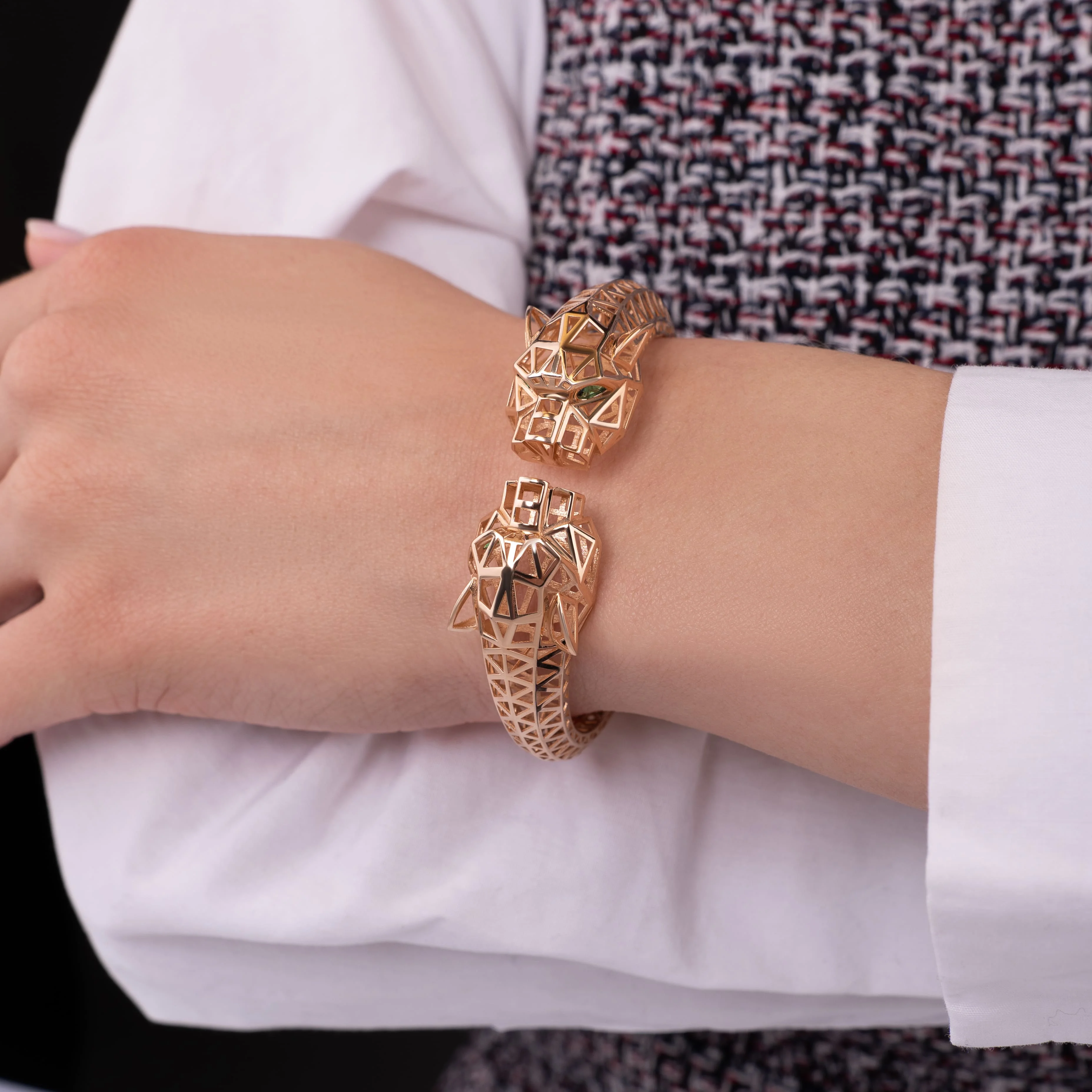 Жесткий незамкнутый браслет из красного золота "Пантера" с фианитами - 1976702