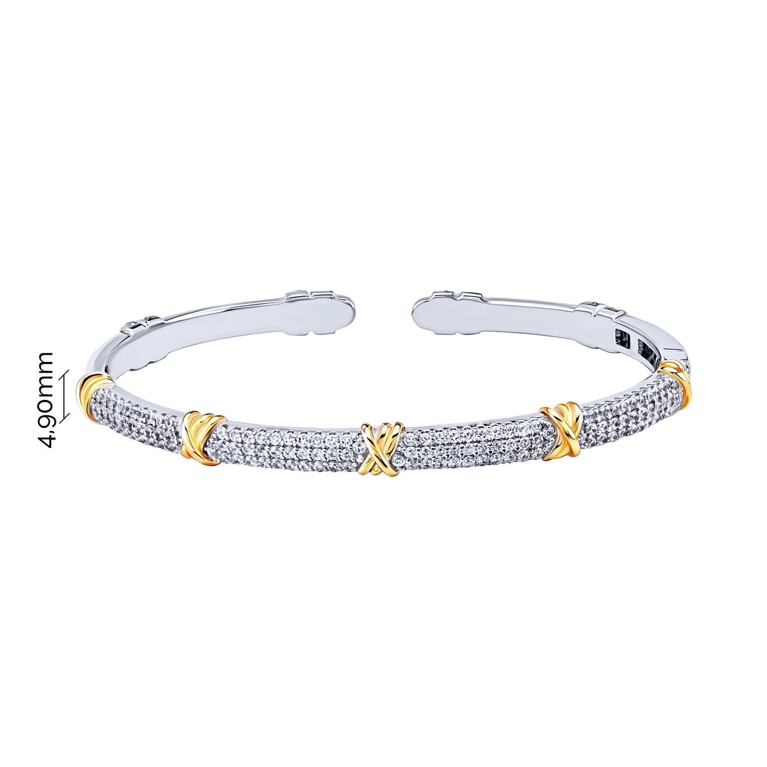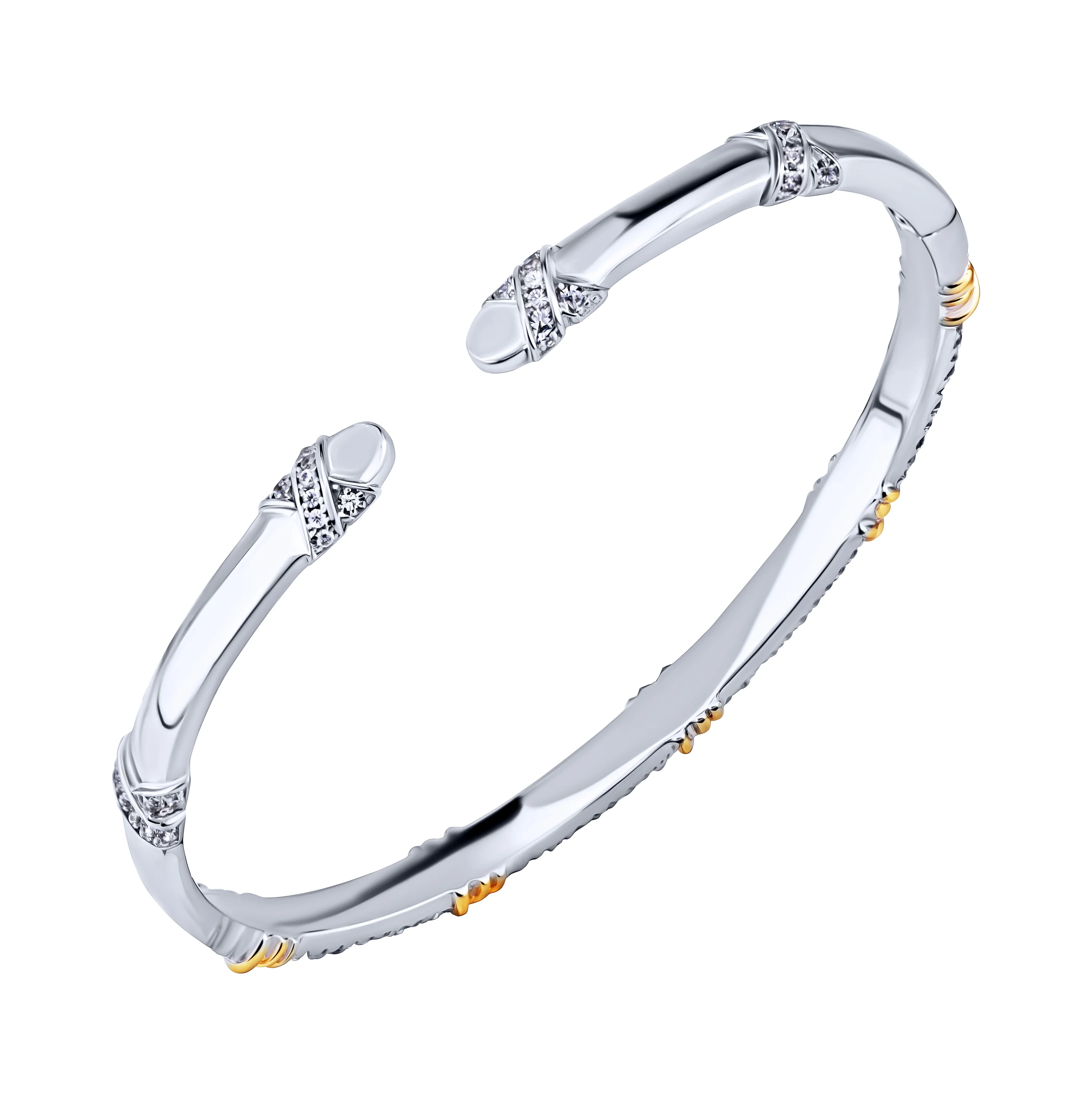 Жесткий незамкнутый браслет в серебре желтым родированием и с россыпью фианитов - 2089023