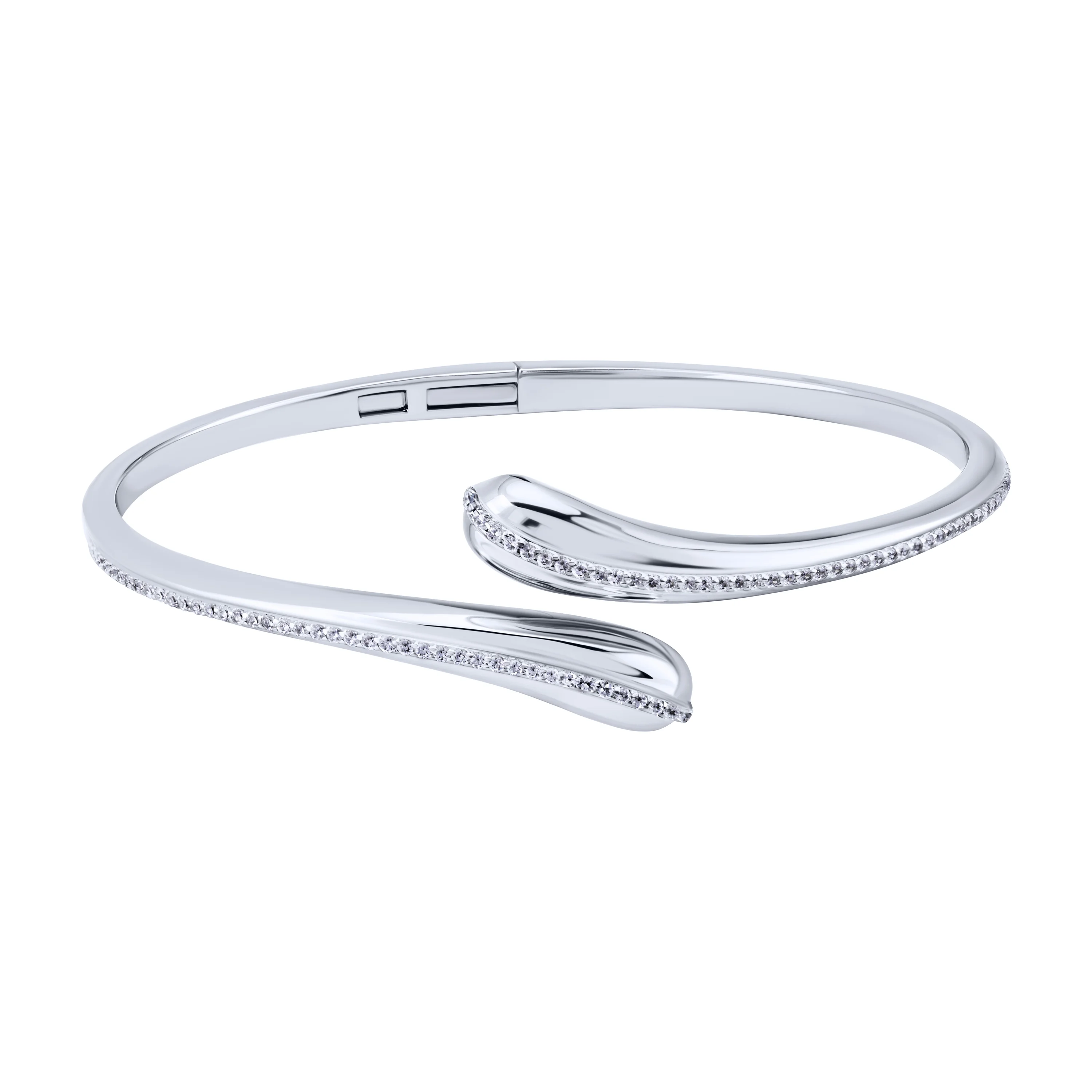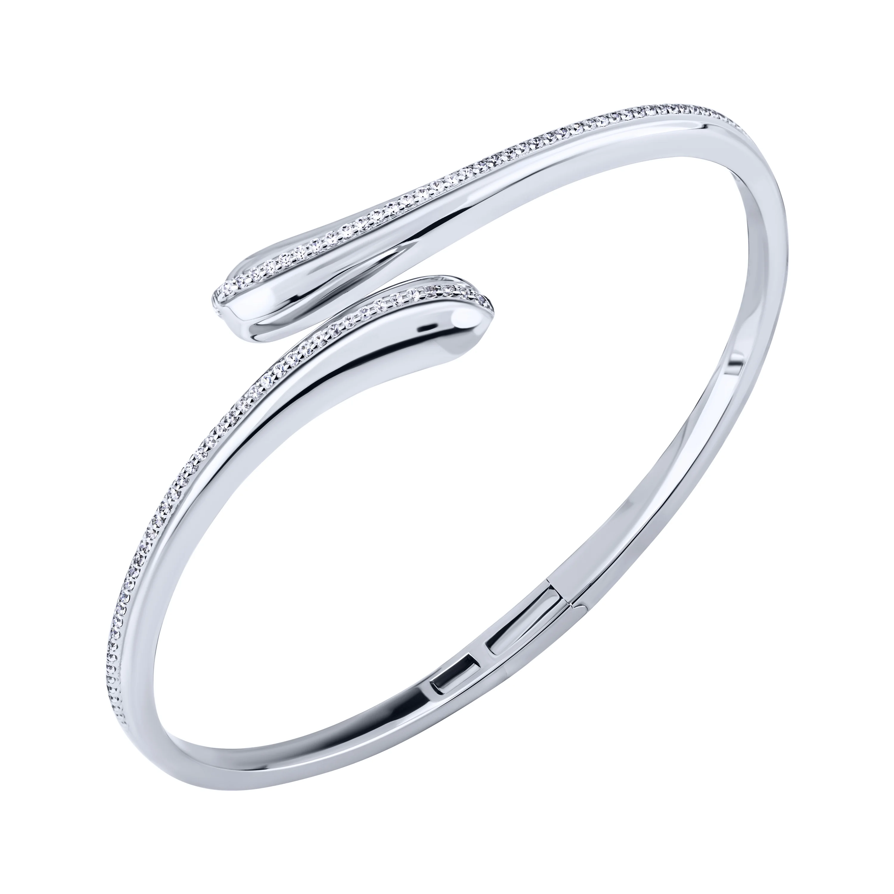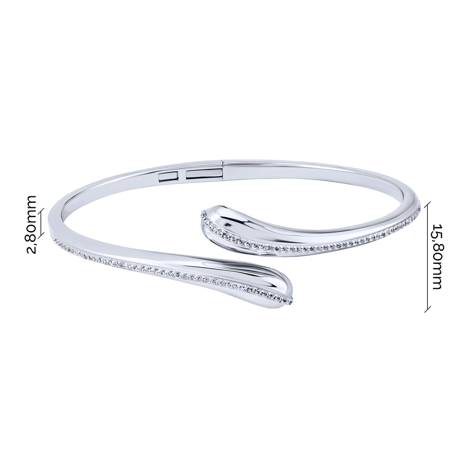 Жесткий незамкнутый серебряный браслет "Капля" с фианитами - 2088961