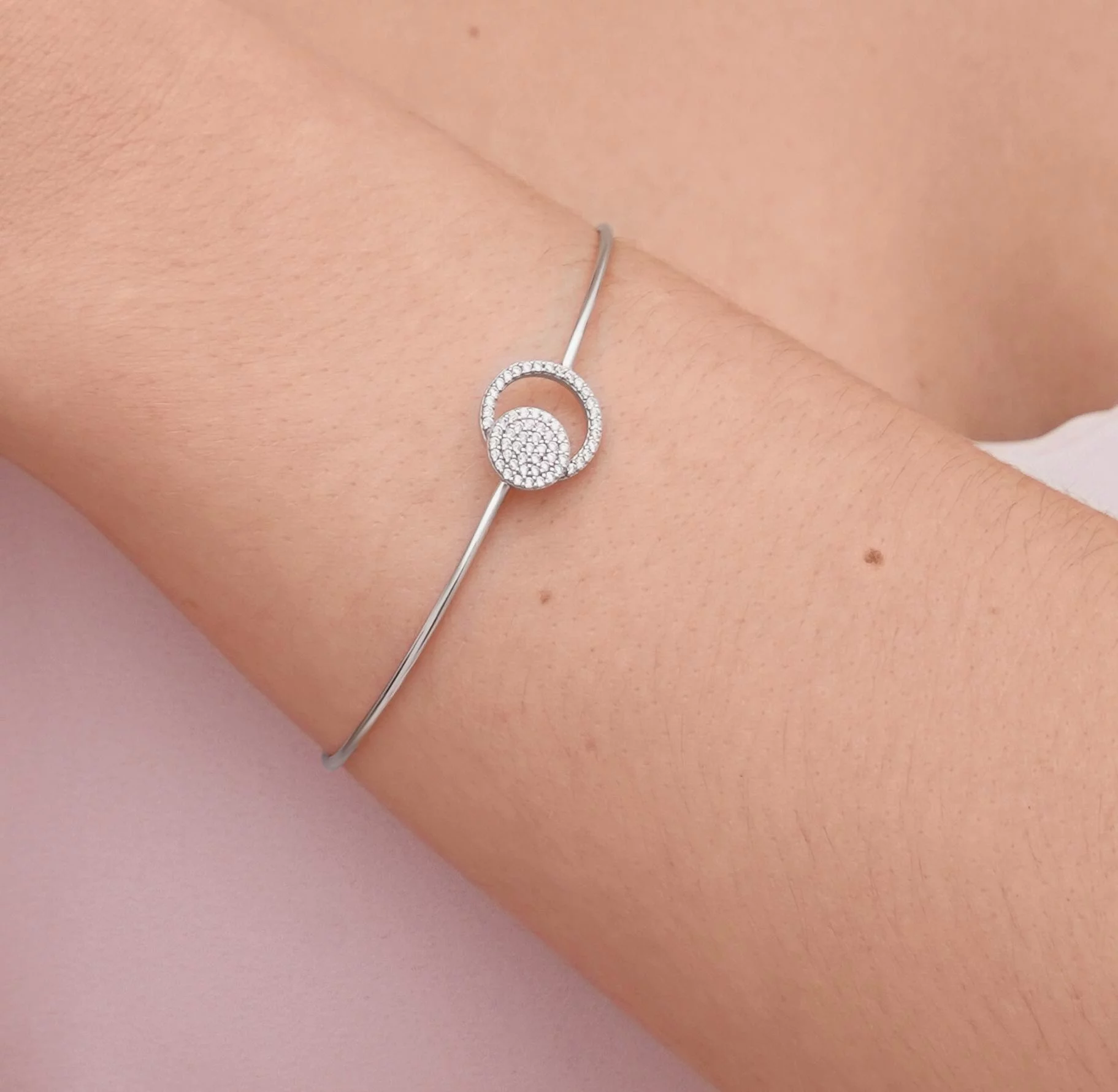 Стильный жесткий браслет "Love" в красном золоте с фианитами - 1874842