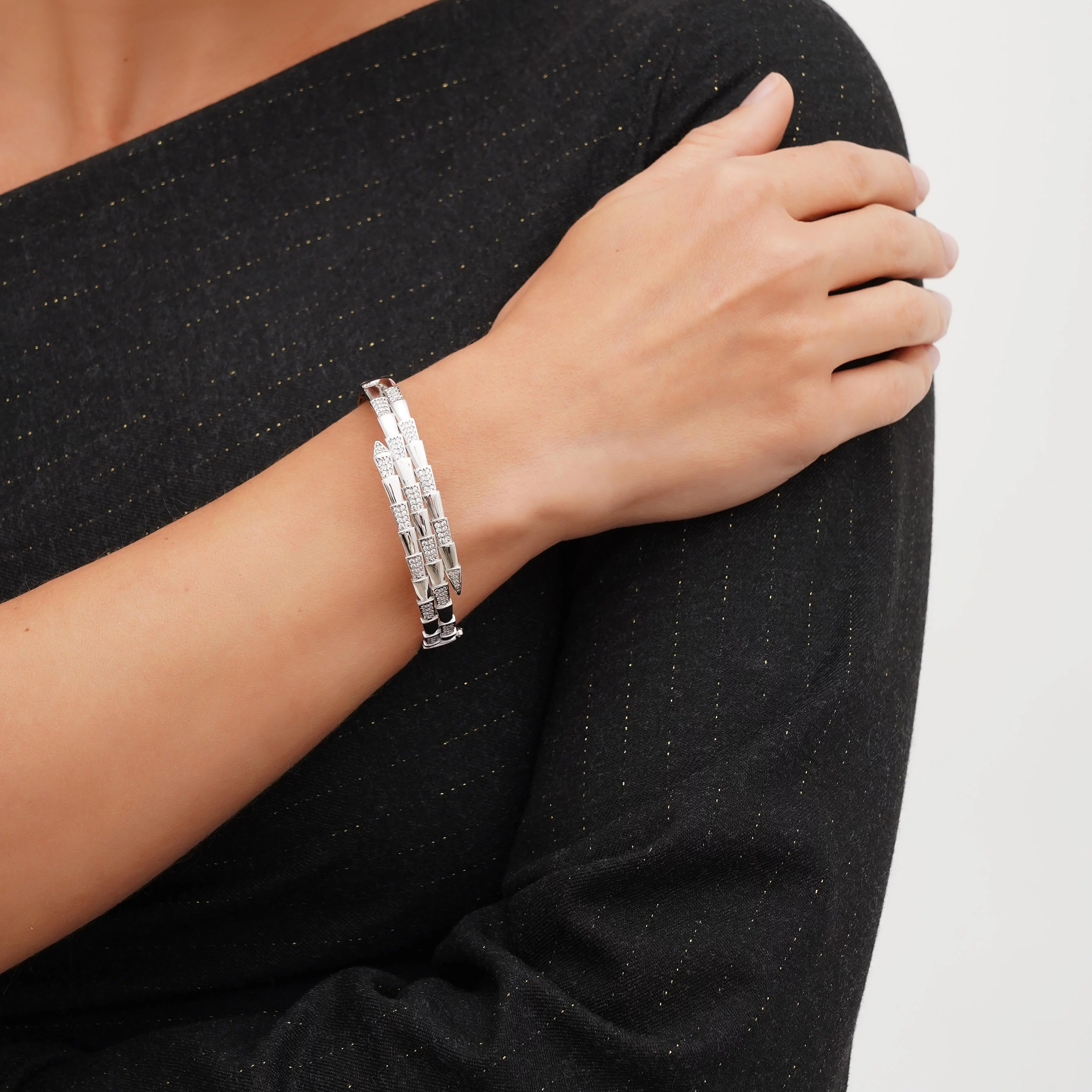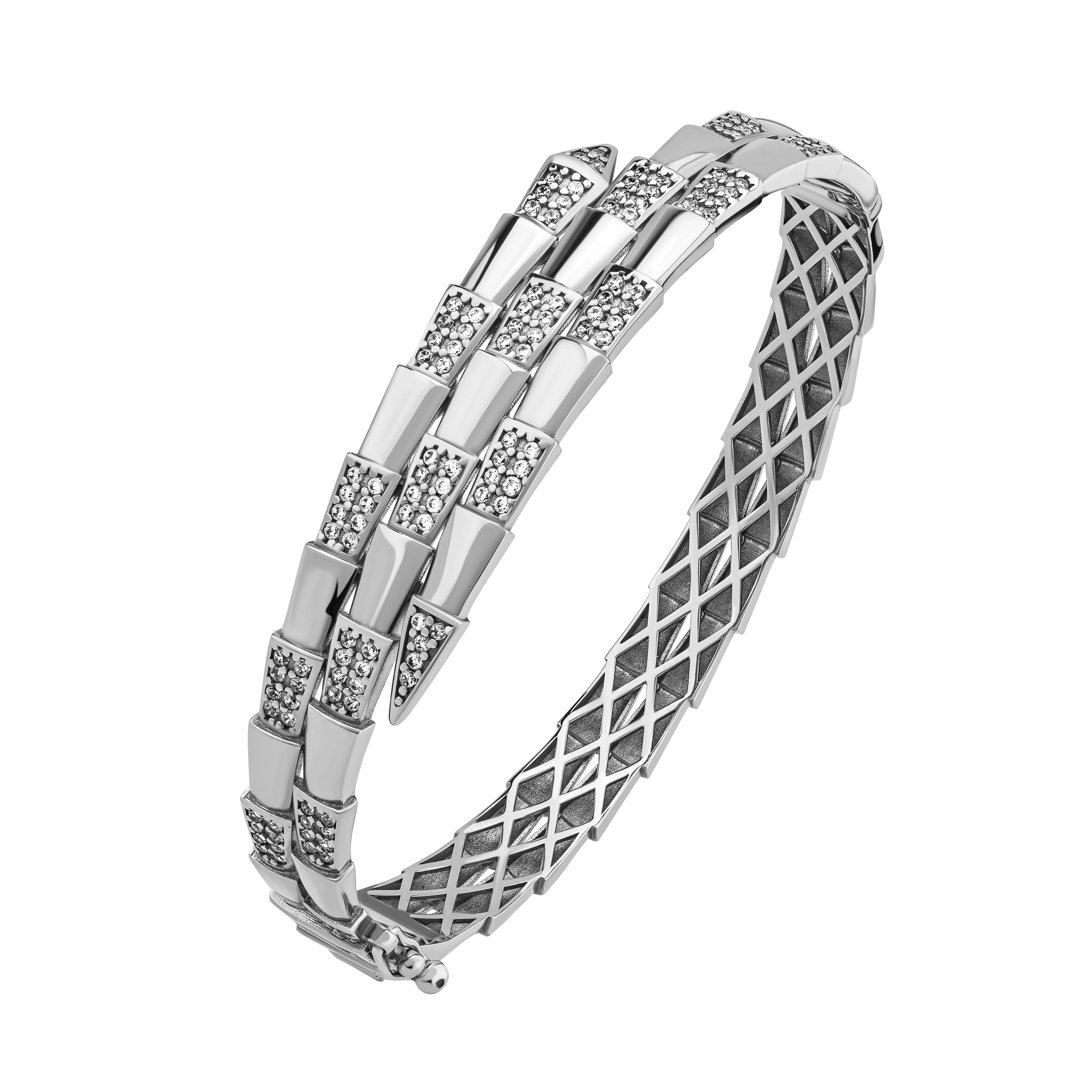 Жесткий браслет "Змея" из красного золота с россыпью фианитов - 1855986