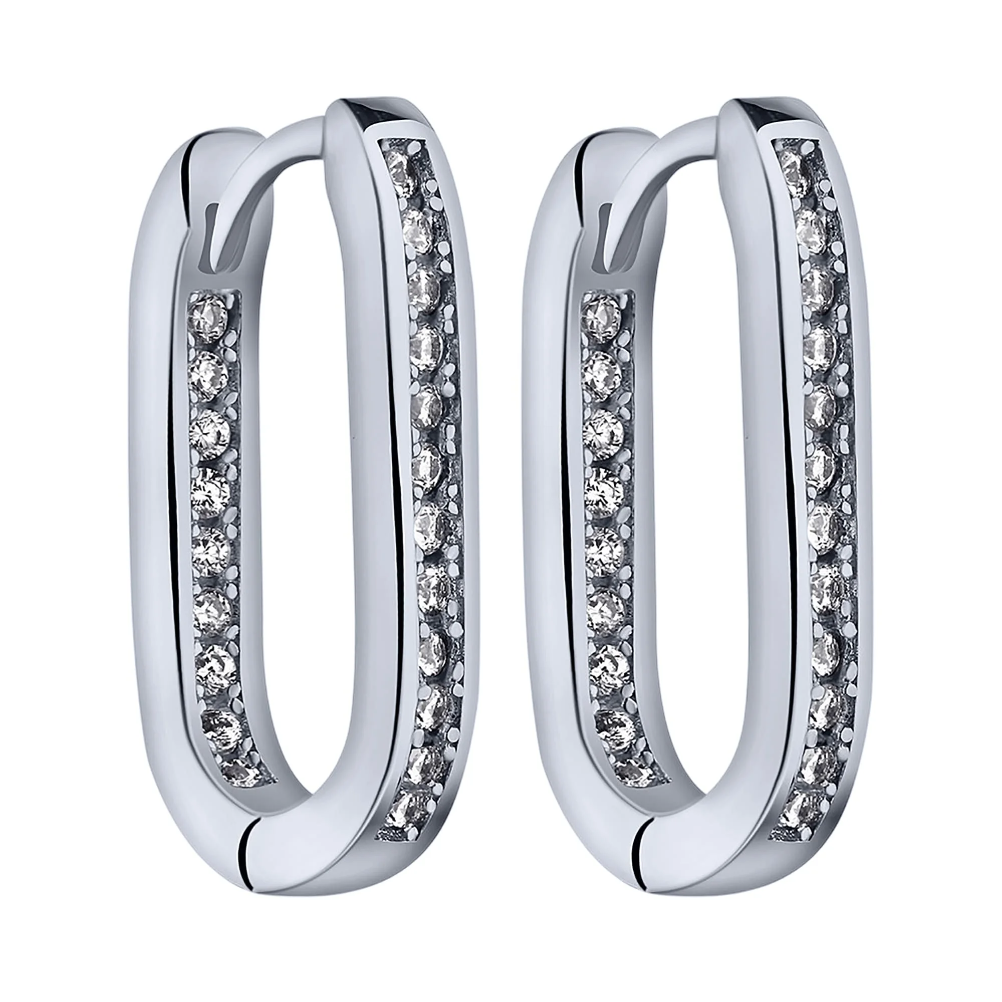 Жлегантные сережки-кольца из серебра с фианитами - 1978678