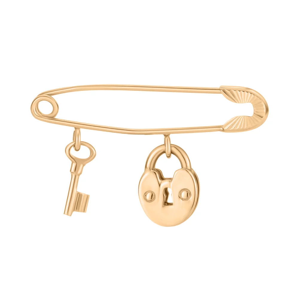 Булавка с подвесками "Ключик и Замок" в красном золоте с алмазной гранью - 1518164