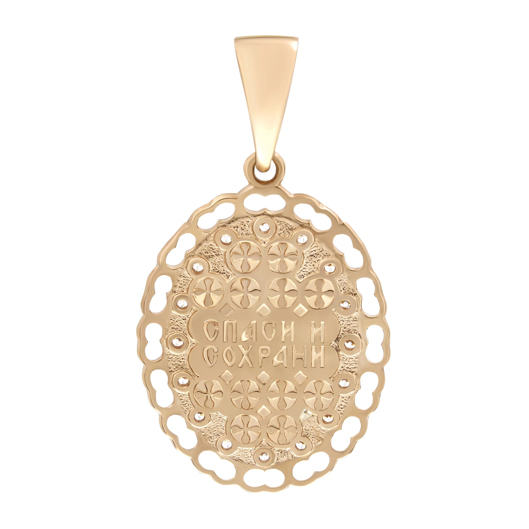 Ладанка в красном и белом золоте с фианитами Богородица "Казанская" - 1616179