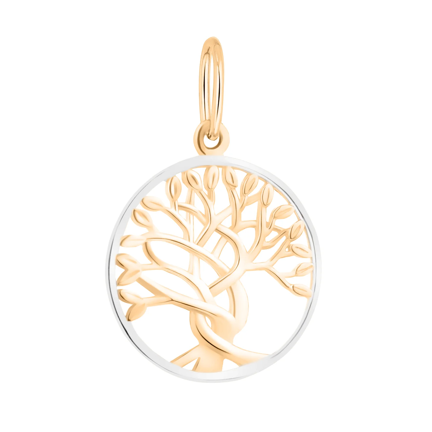 Подвес из комбинированного золота "Дерево жизни" с алмазной гранью - 1824404