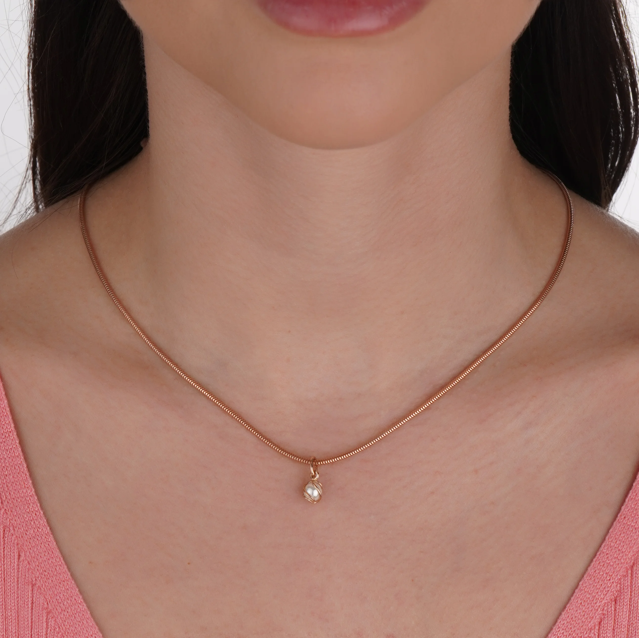 Элегантный подвес в минималистичном стиле в красном золоте с жемчужиной - 1939382