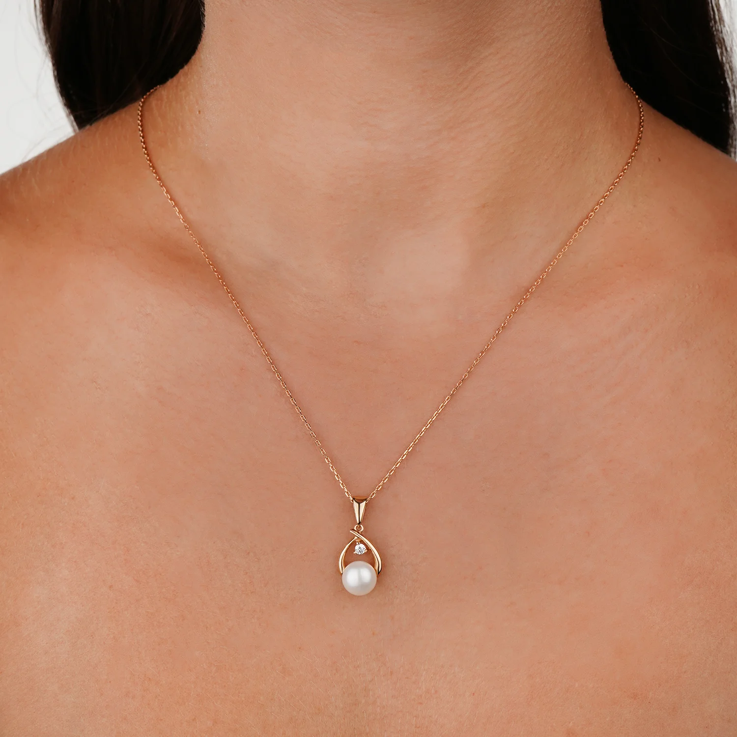 Элегантный подвес каплевидной формы из белого золота с фианитами и жемчужиной - 1915883