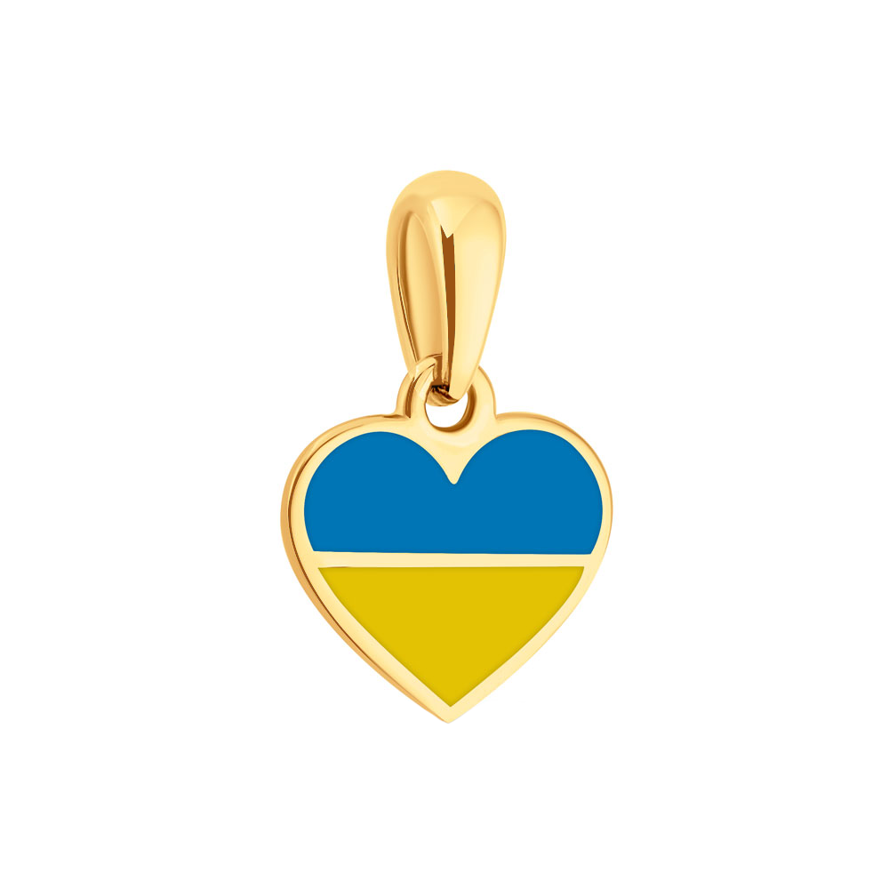Золотая подвеска "Сердечко" с сине-желтой эмалью - 1518128