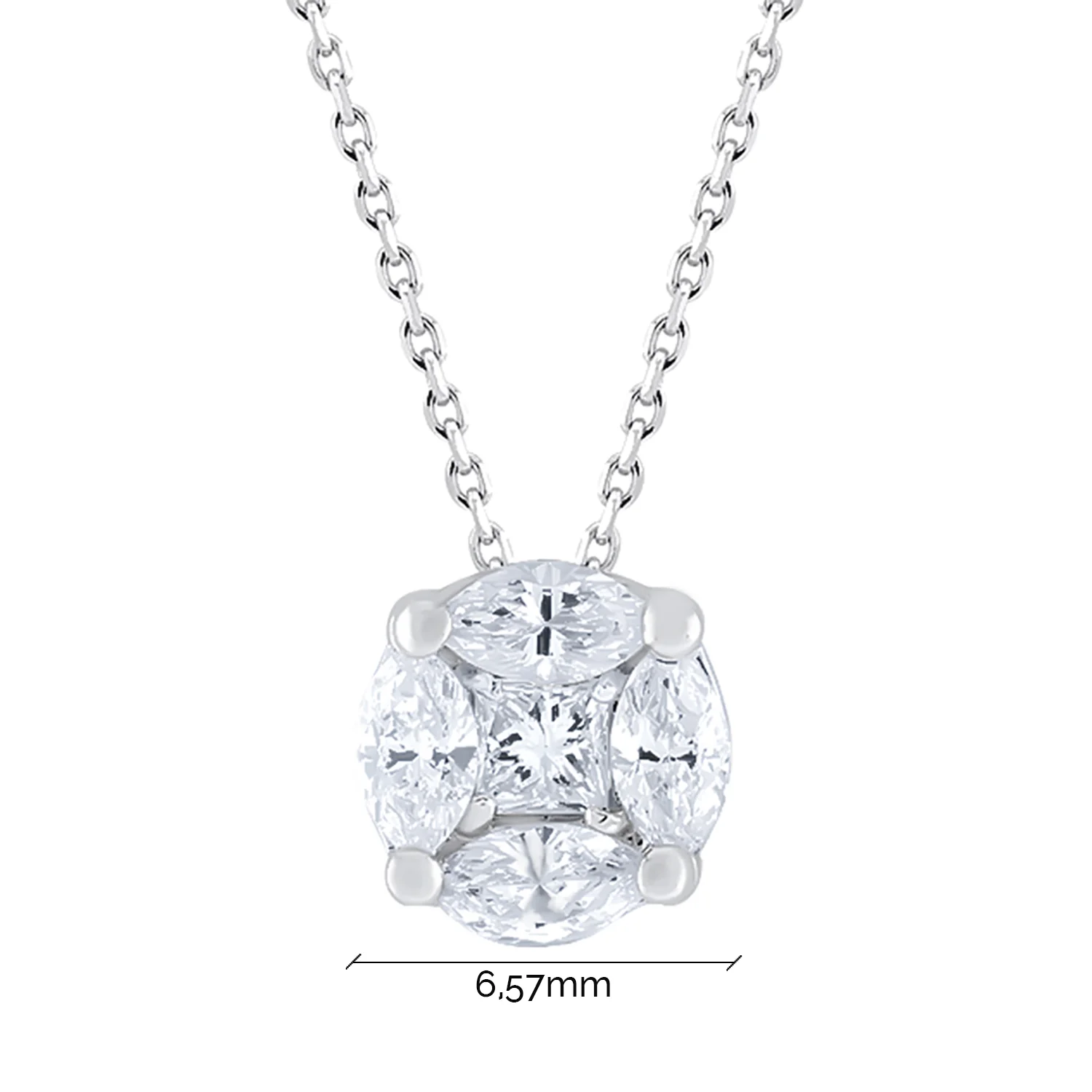 Стильное колье с подвеской "Цветок" из белого золота с бриллиантом и якорным плетением - 1879109