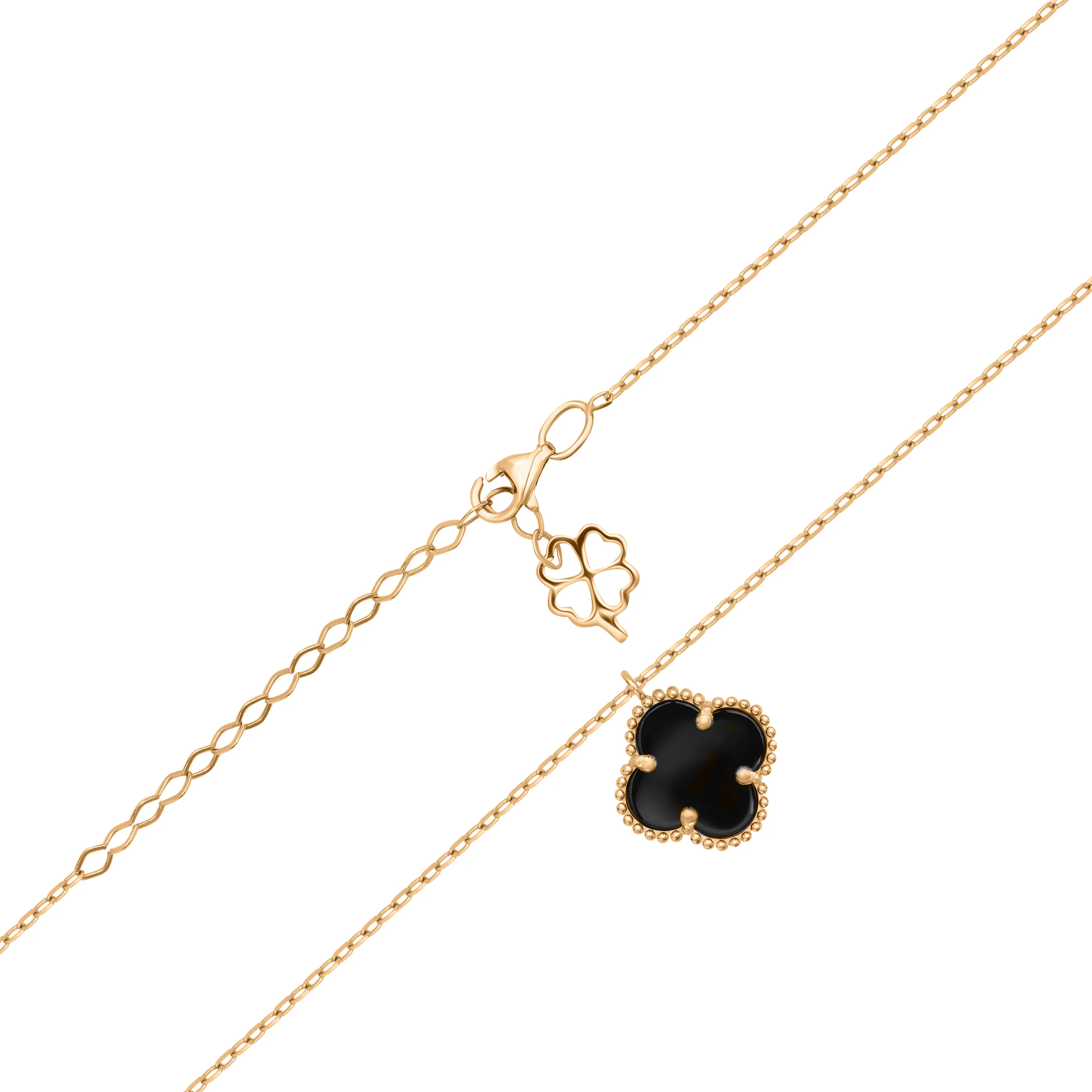 Цепочка в красном золоте с подвеской "Клевер" и ониксом якорное плетение - 1649757