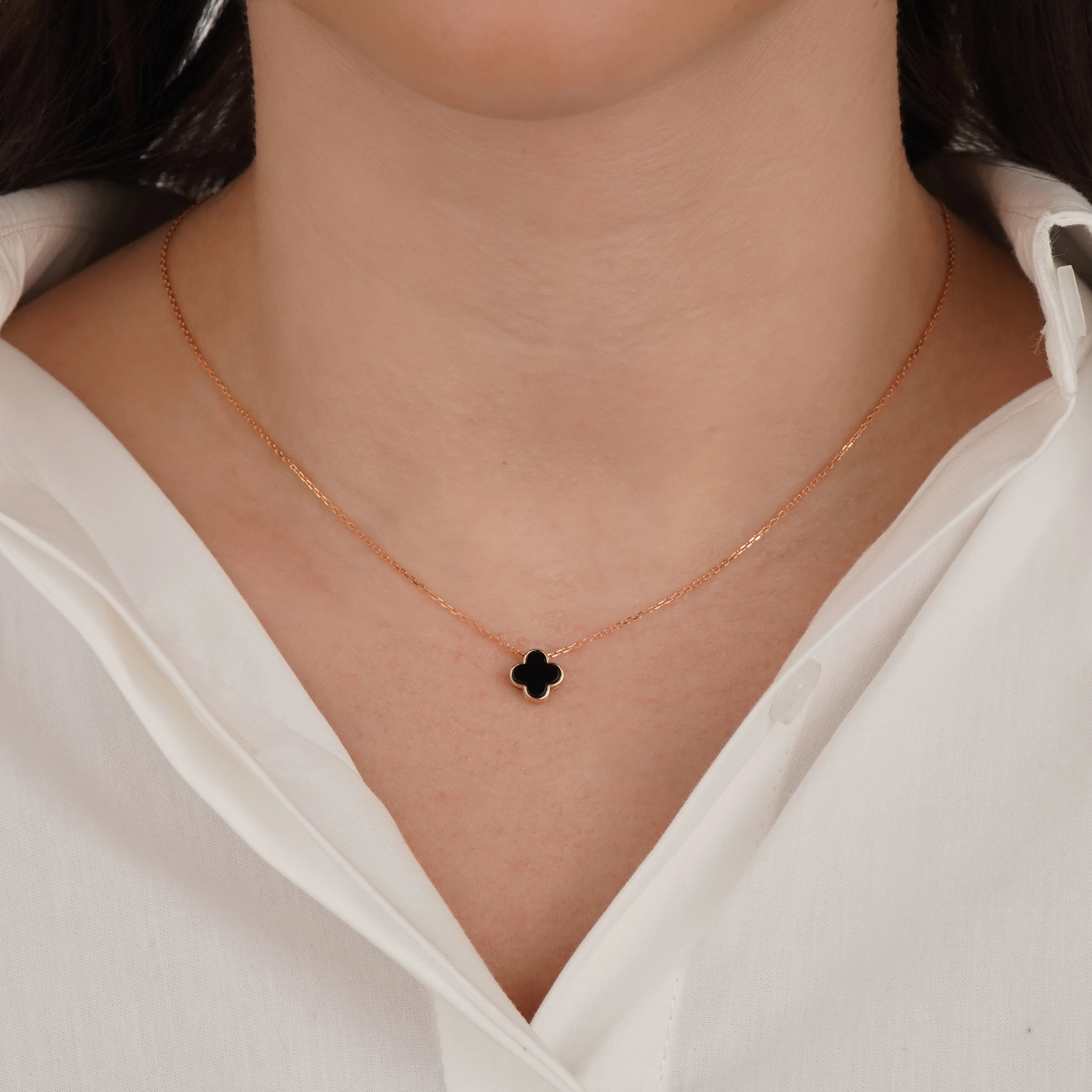 Колье из красного золота с подвесами из оникса "Клевер" в якорном плетении - 1744970