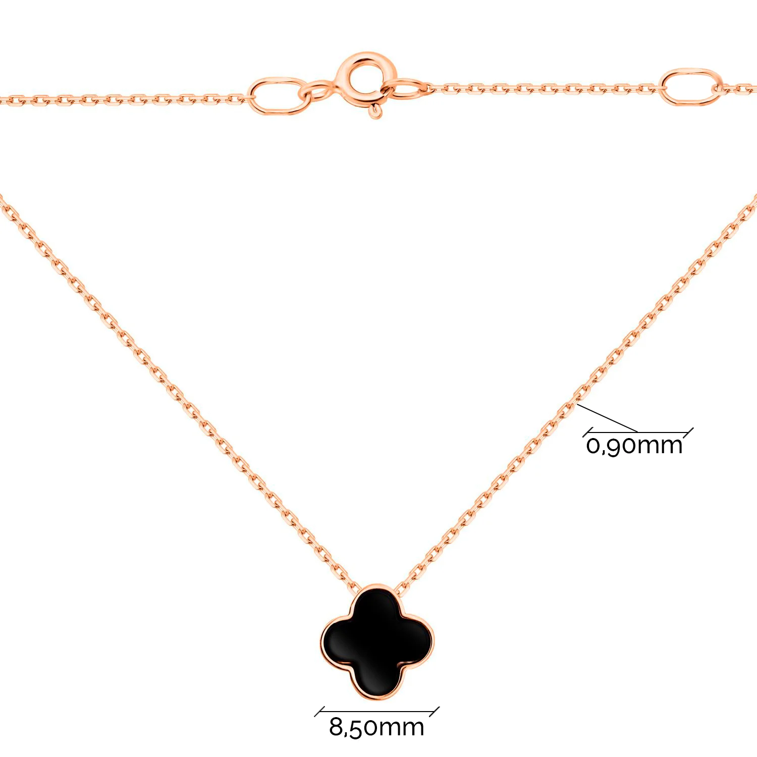 Колье с подвесом "Клевер" из красного золота с ониксом якорное плетение - 1824374