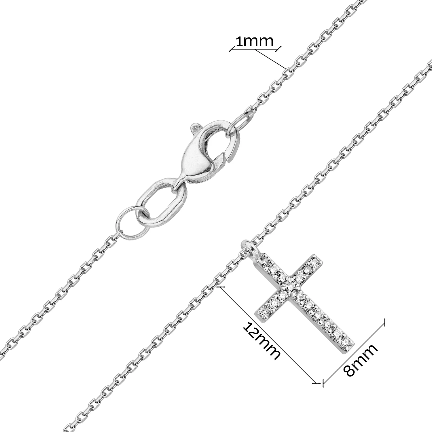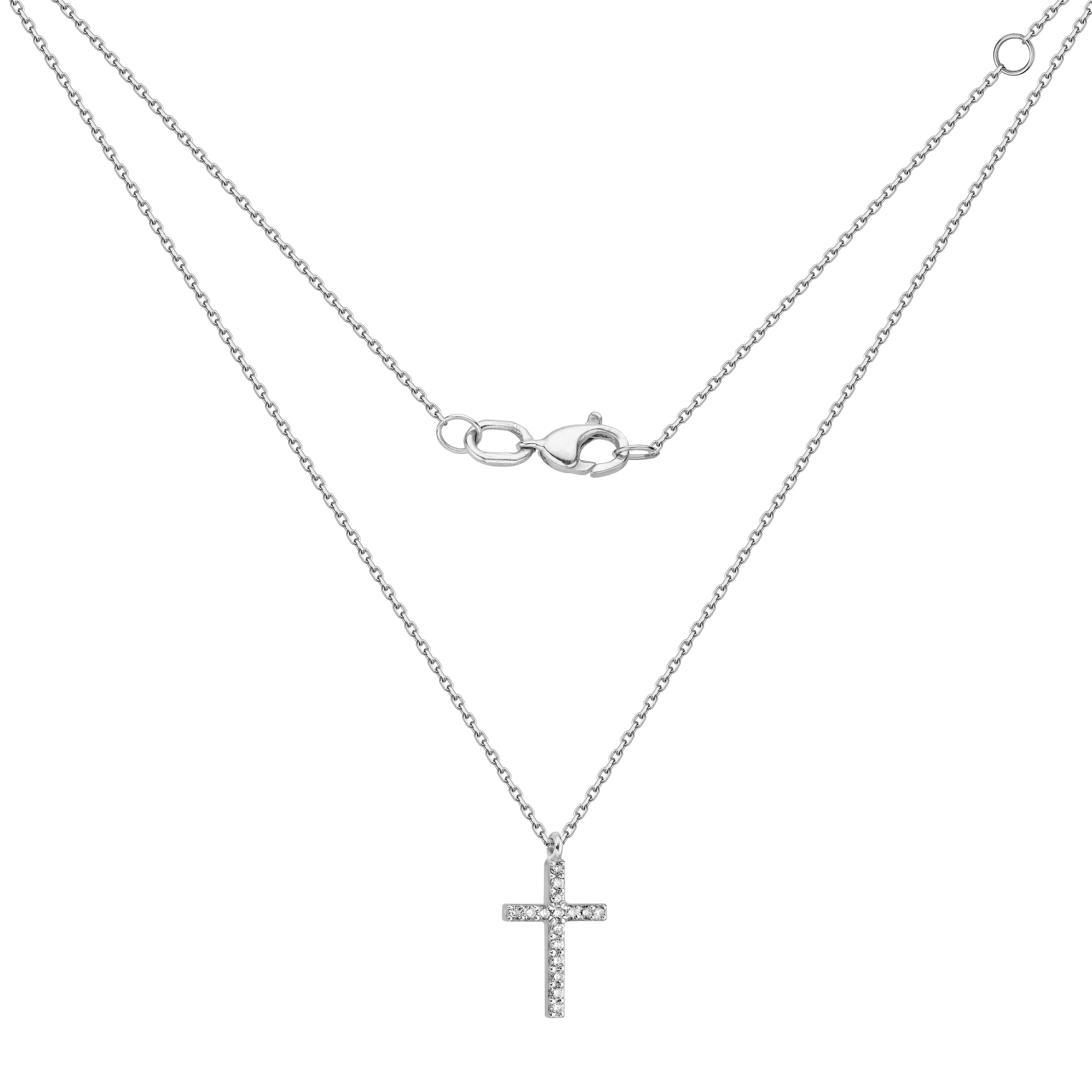 Цепочка с подвесом крестик из белого золота с фианитами и якорным плетением - 1858400