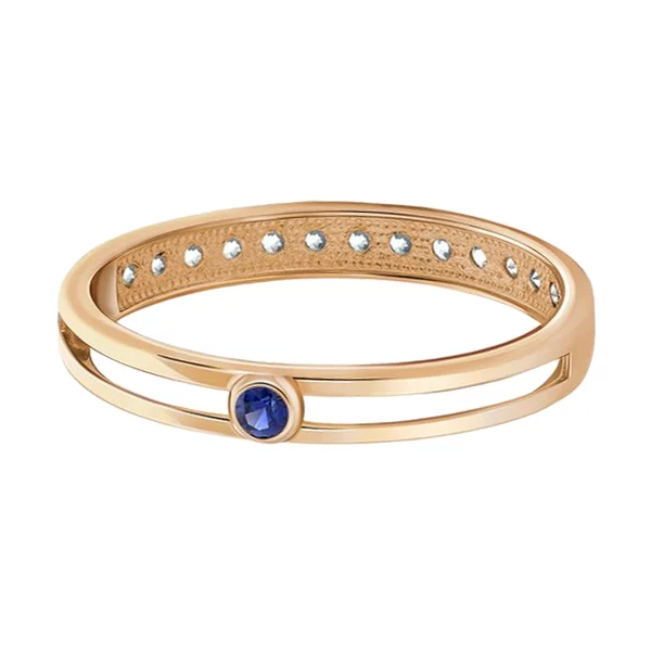 Кольцо в красном золоте двухстороннее с сапфиром и фианитами - 482863