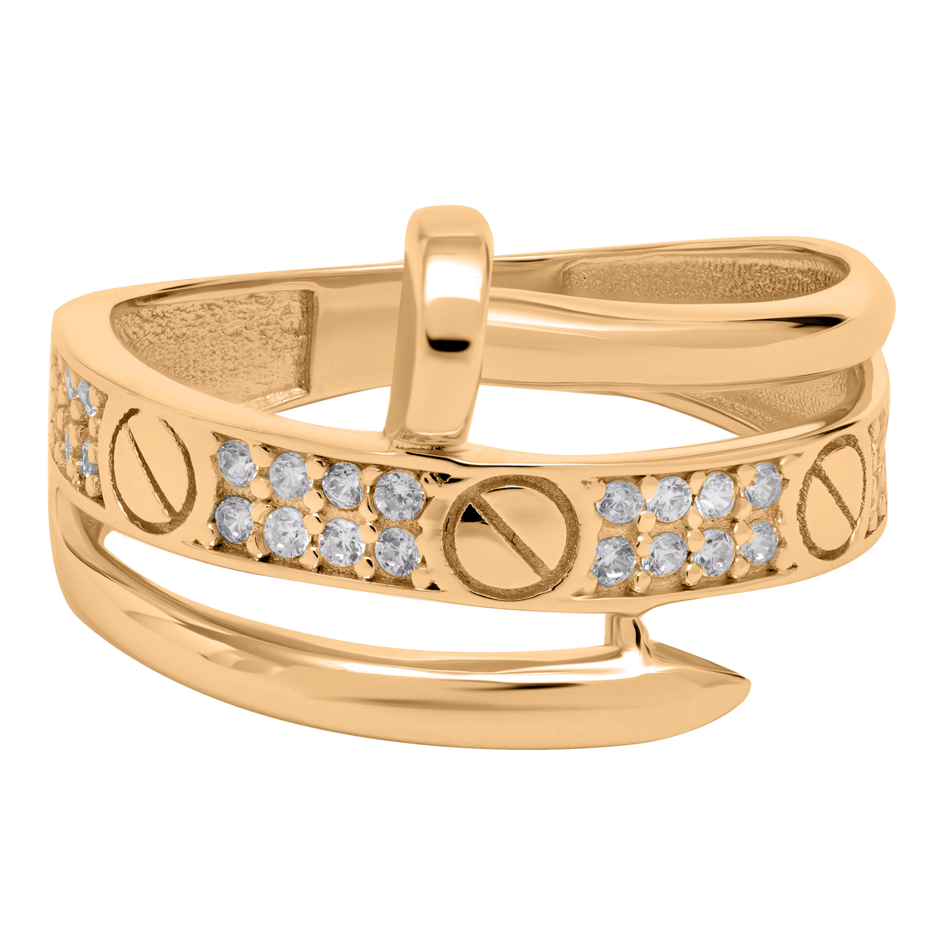 Двойное кольцо "Переплетение" с фианитами из красного золота - 1736141