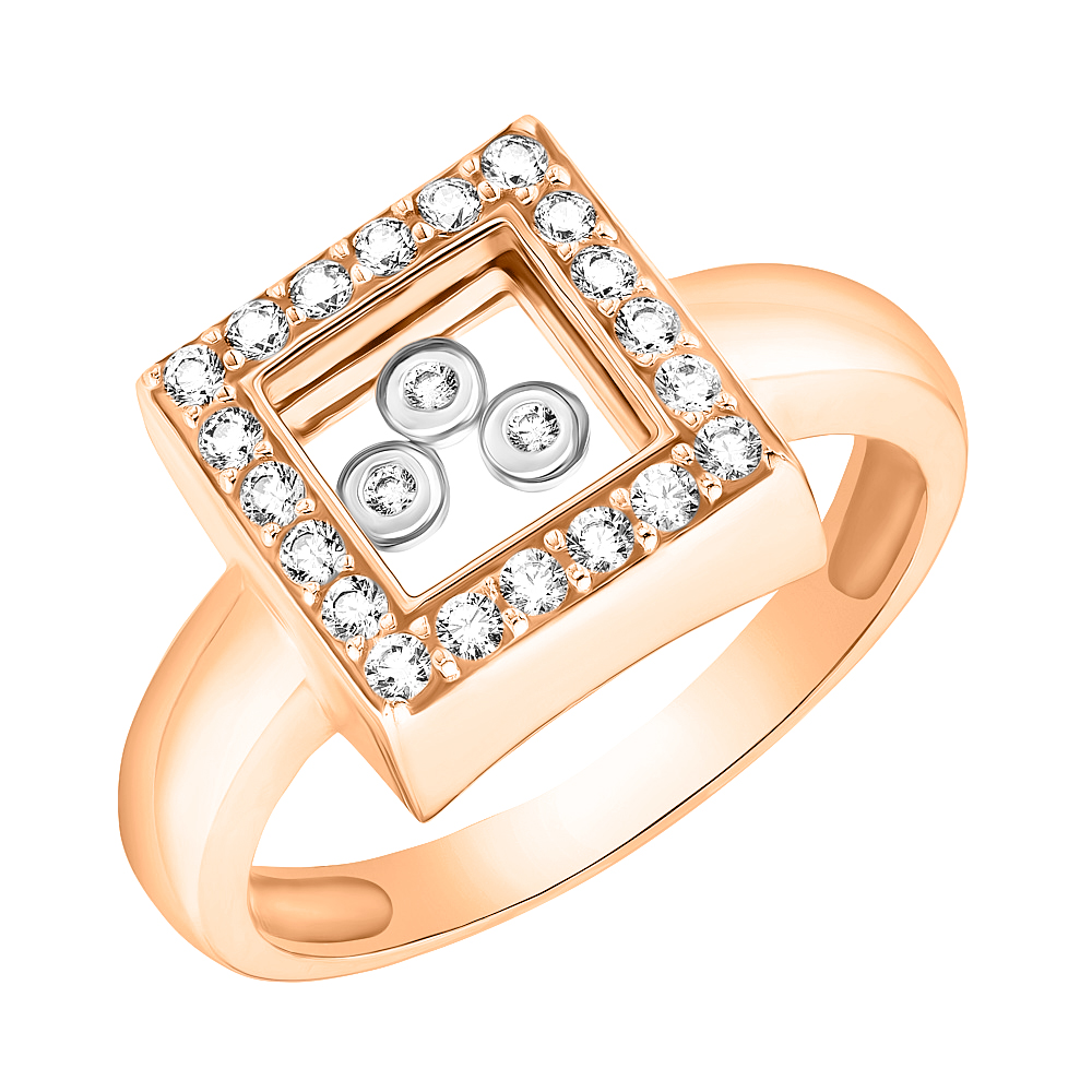 Кольцо в комбинированном золоте "Квадрат" с фианитами - 1516878