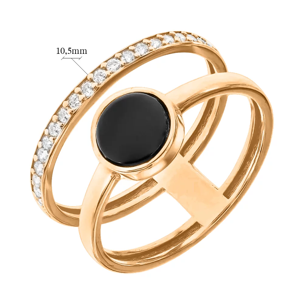 Двойное кольцо из красного золота с агатом и фианитом - 819904