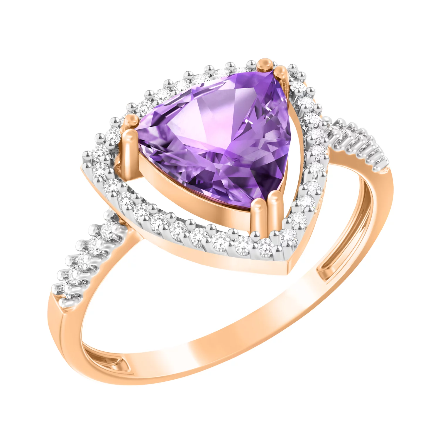 Золотое кольцо с аметистом и фианитами - 1513691