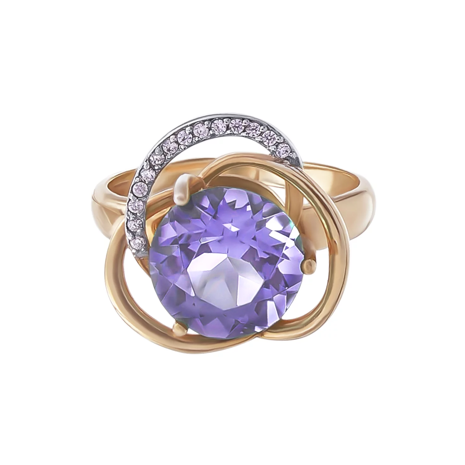 Двойное кольцо "Переплетение" с фианитами из красного золота - 1736141