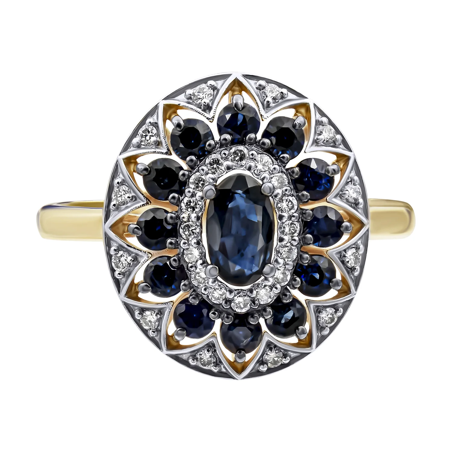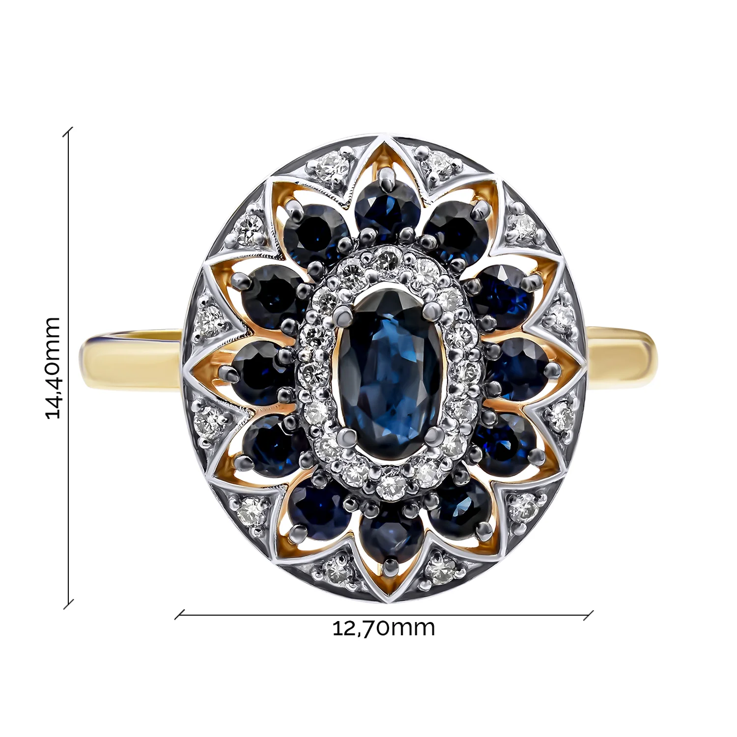 Кольцо из красного золота "Цветок" с сапфиром и бриллиантами - 1524225