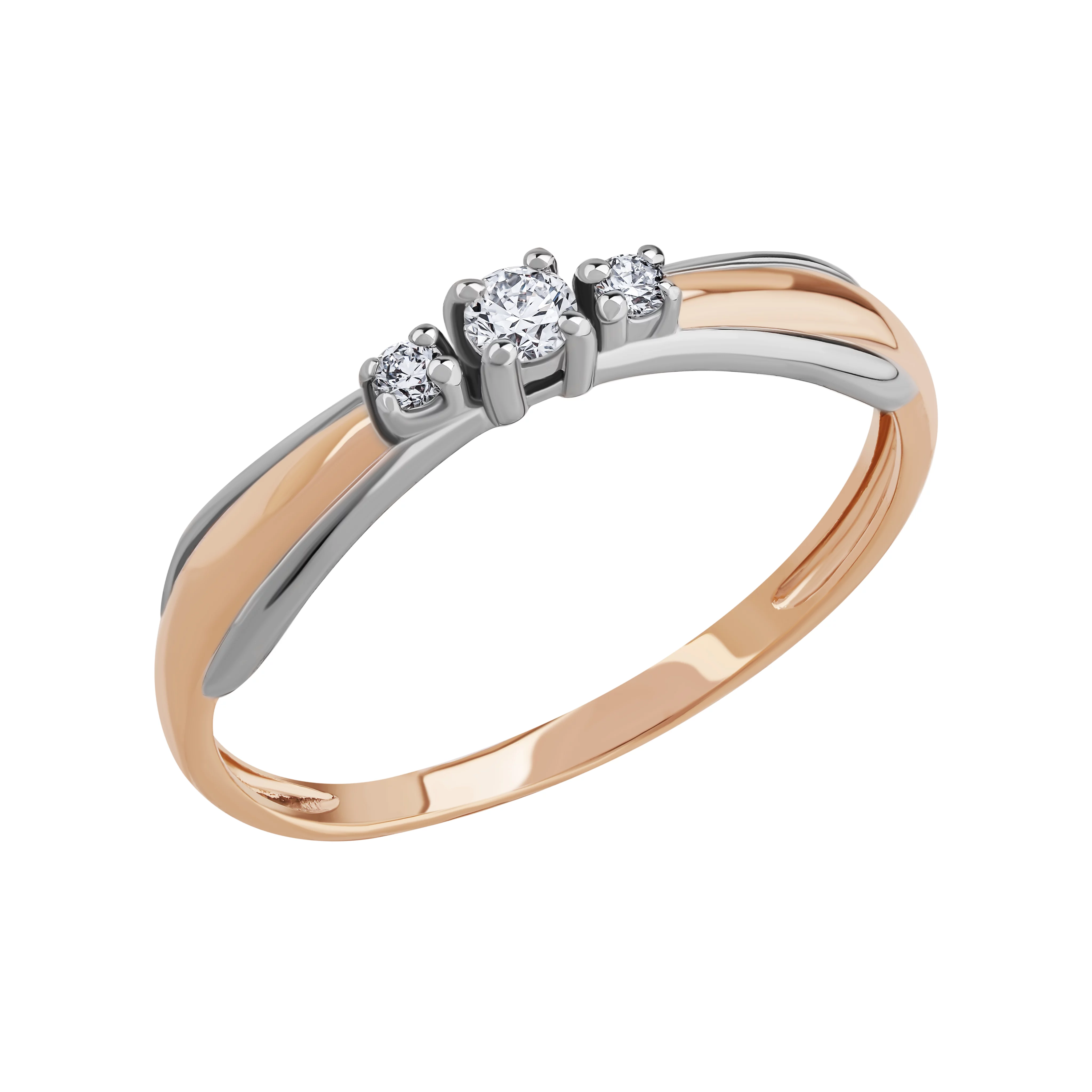 Классическое кольцо из комбинированного золота с бриллиантом - 1879119