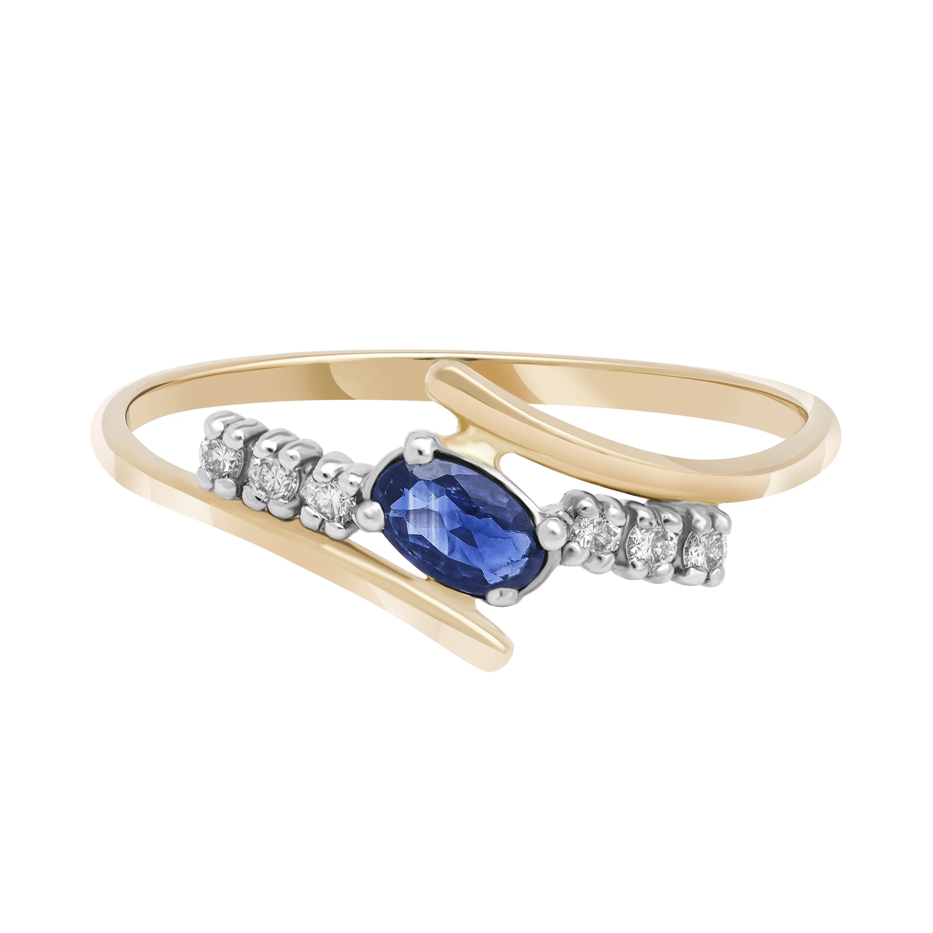 Кольцо из комбинированного золота с дорожкой бриллиантов и сапфиром - 474375