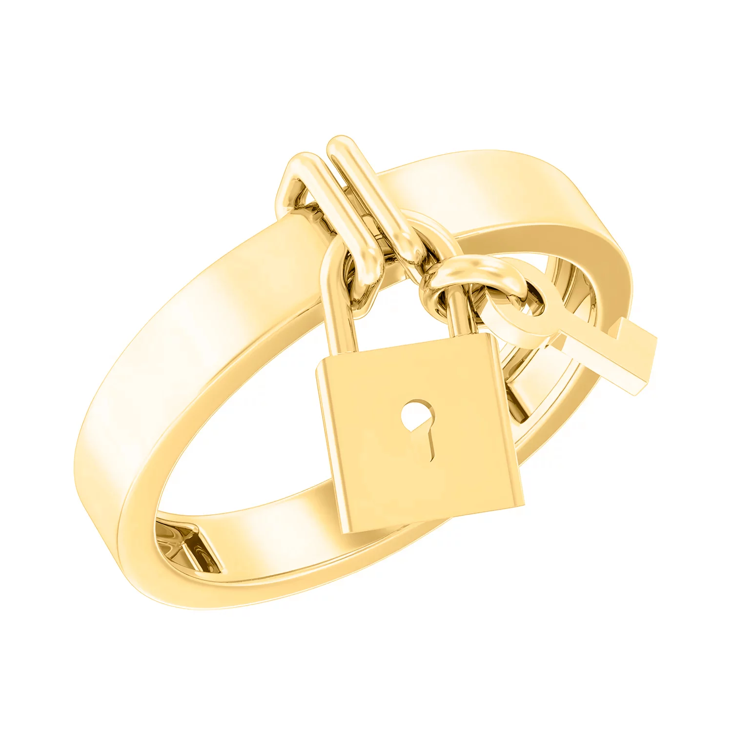 Кольцо в желтом золоте с подвесом "Замок и Ключик" - 1513692