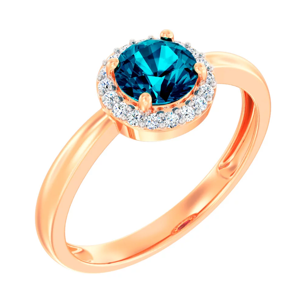 Кольцо с топазом лондон и фианитами в красном золоте - 1514321