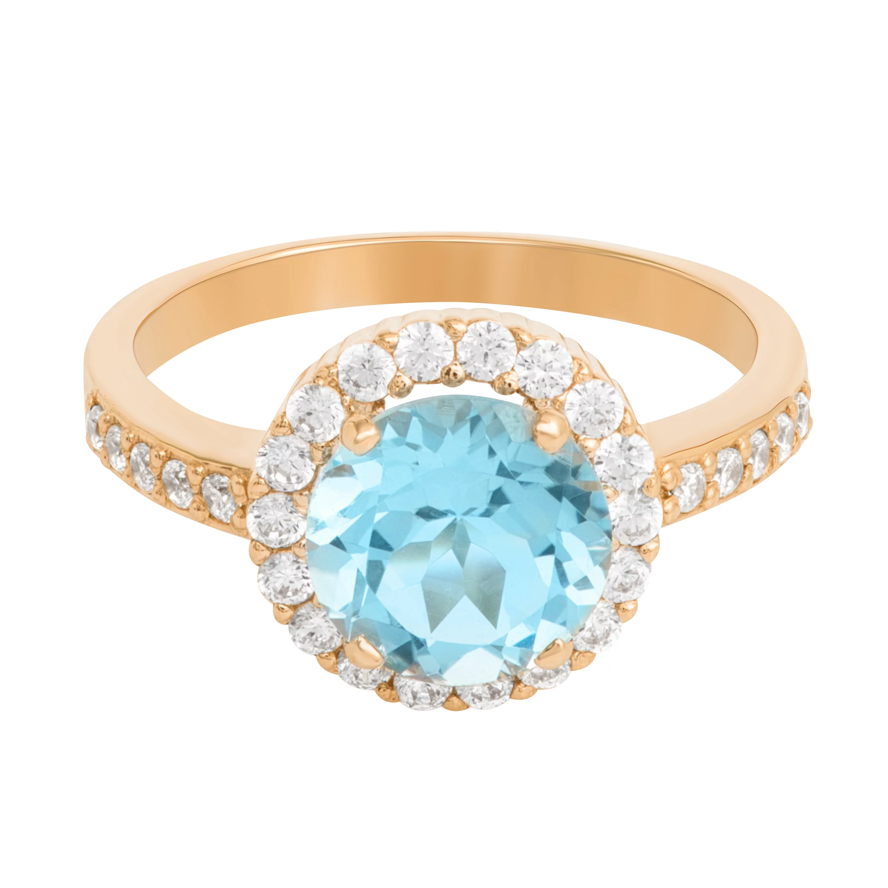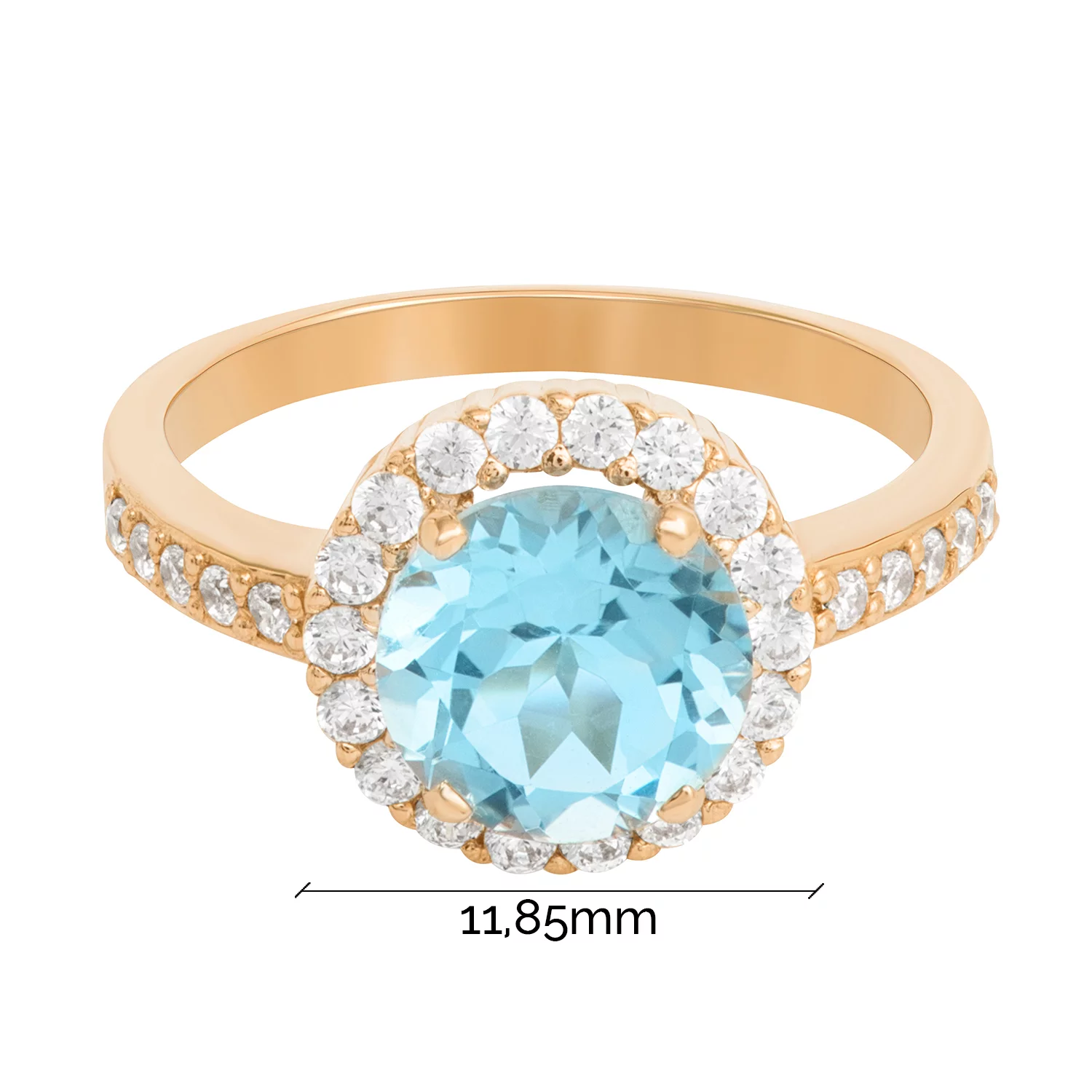 Стильное кольцо в геометричном стиле в красном золоте с топазом и фианитами - 1939740
