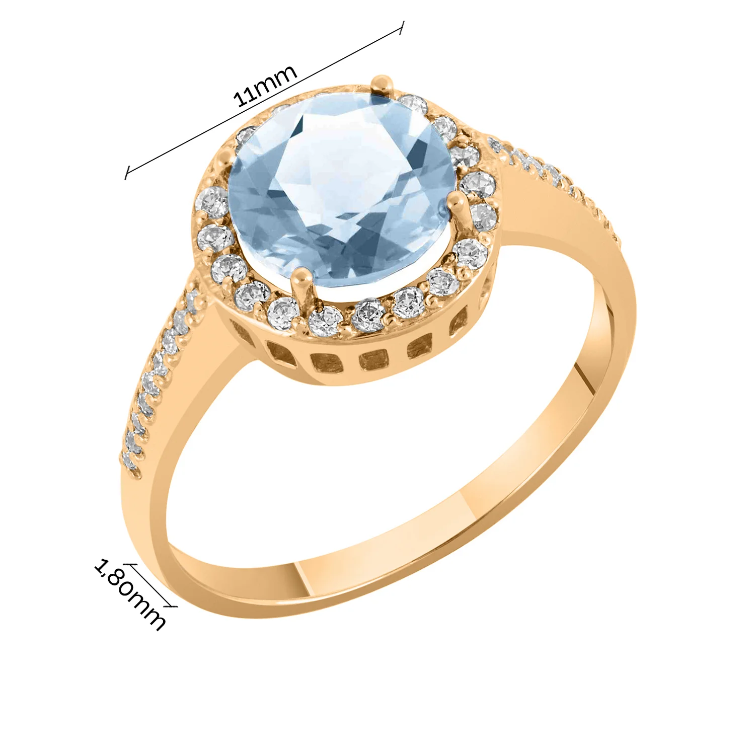 Стильное кольцо в геометричном стиле в красном золоте с топазом и фианитами - 1939740