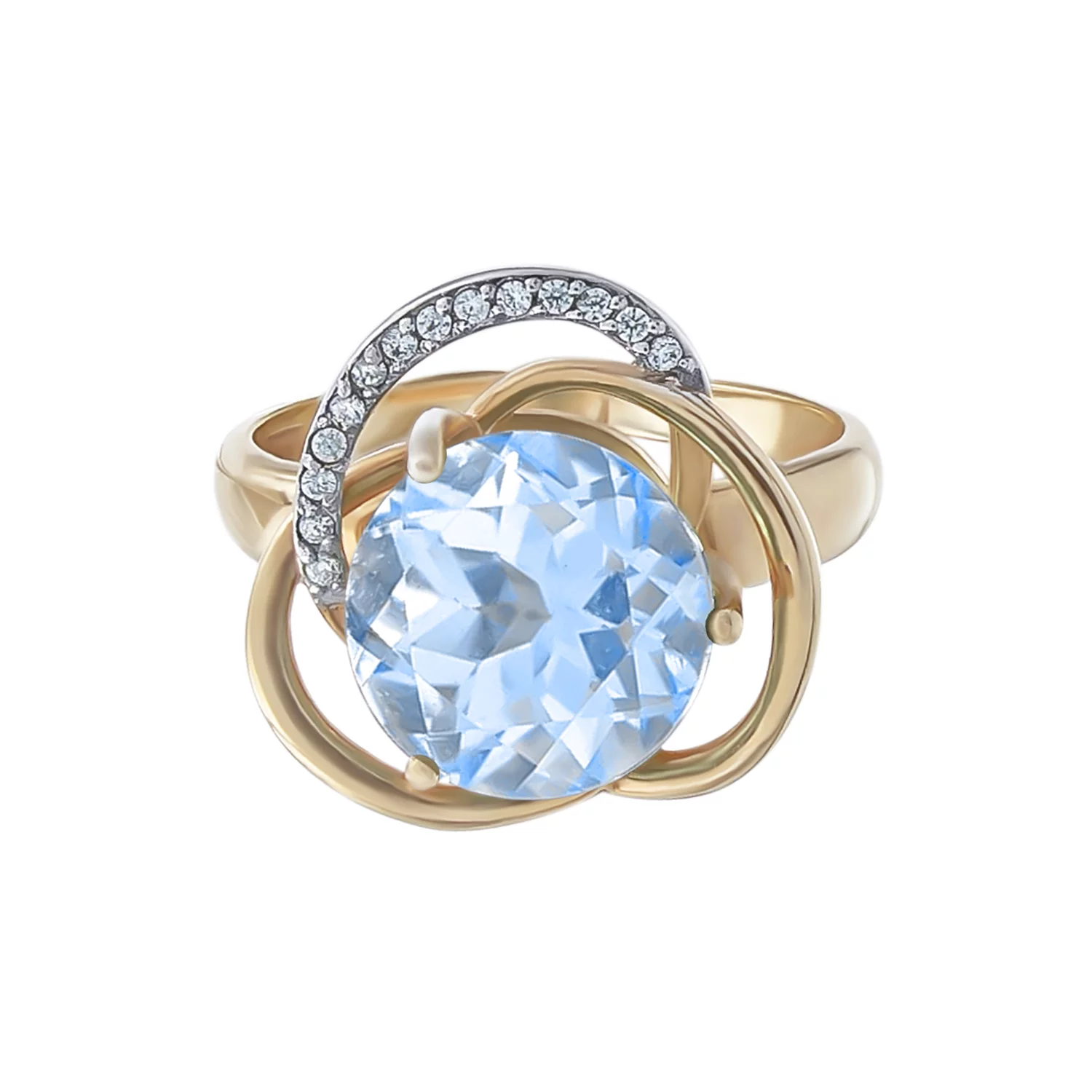 Ажурное кольцо из красного золота "Завитки" с кварцем и фианитами - 1534363