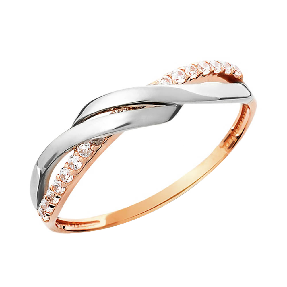 Кольцо из комбинированного золота "Переплетение" с фианитами - 1391942