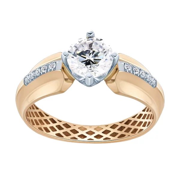 Широкое кольцо "Переплетение" из красного золота с фианитами - 1559550