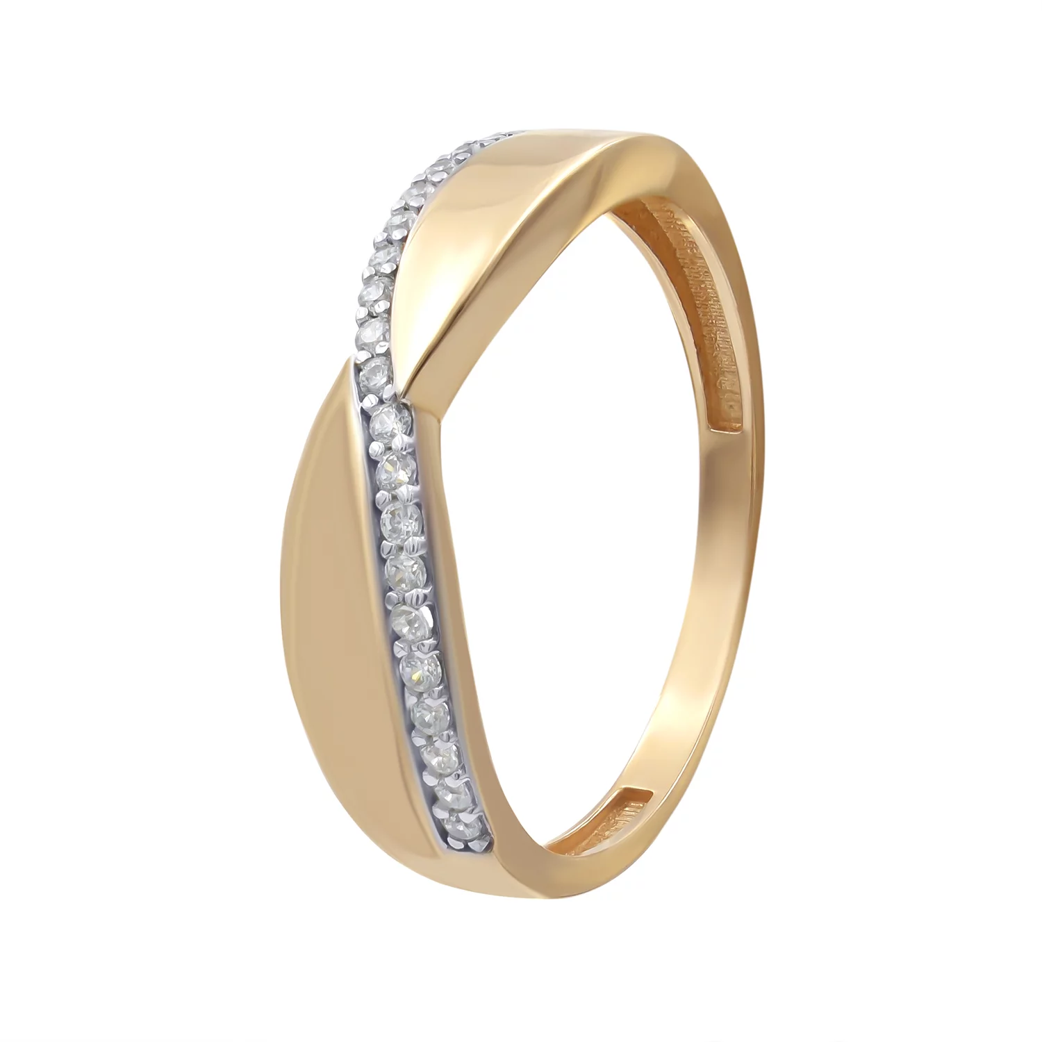 В дизайне кольца совмещены классическая утонченность и геометричность. Необычная форма выполнена в плавных линиях с мягкими гранями. Ювелирное украшение инкрустировано цирконием. Узор напоминает тонкую цепочку, проходящую через всю верхнюю грань. Изделие изготовлено из красного золота 585 пробы, которому характерны прочность и износостойкость. Благодаря составу сплава оттенок украшения нежный и легко сочетается с любым стилем. Кольцо будет уместно для праздничных и повседневных образов, дополняя их выигрышным акцентом.