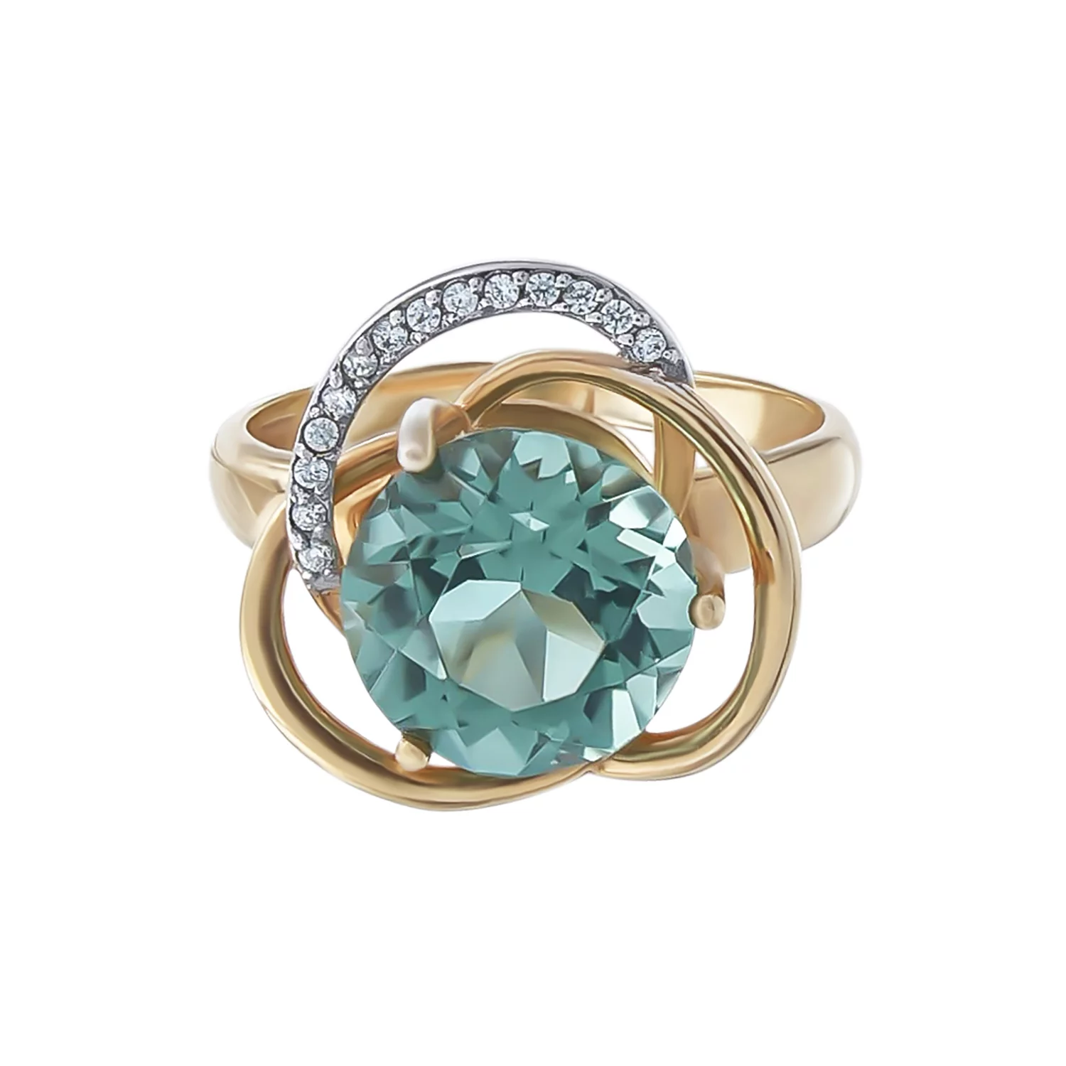 Ажурное кольцо из красного золота "Завитки" с кварцем и фианитами - 1534363
