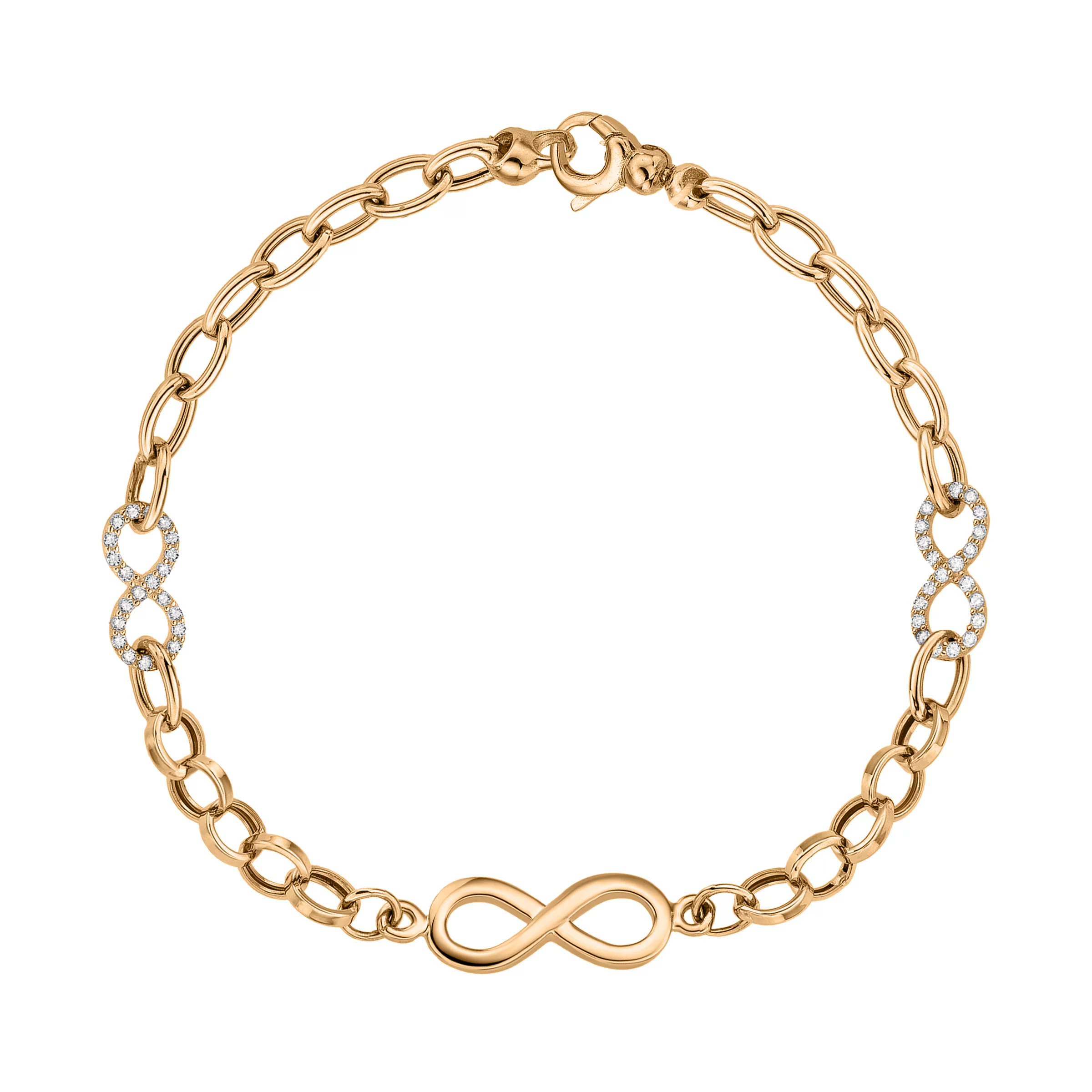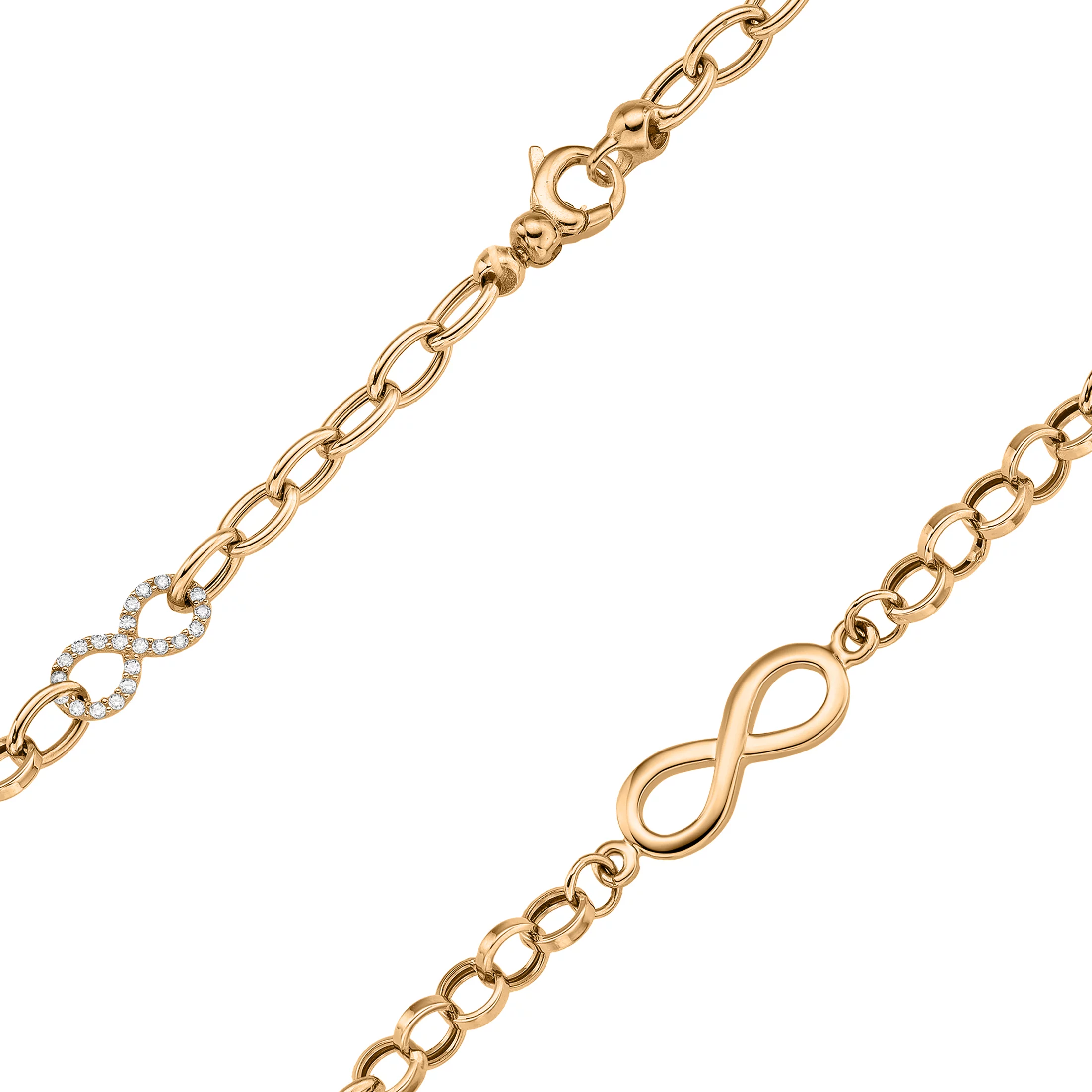 Браслет из красного золота с фианитами "Бесконечность" в якорном плетении - 1807384