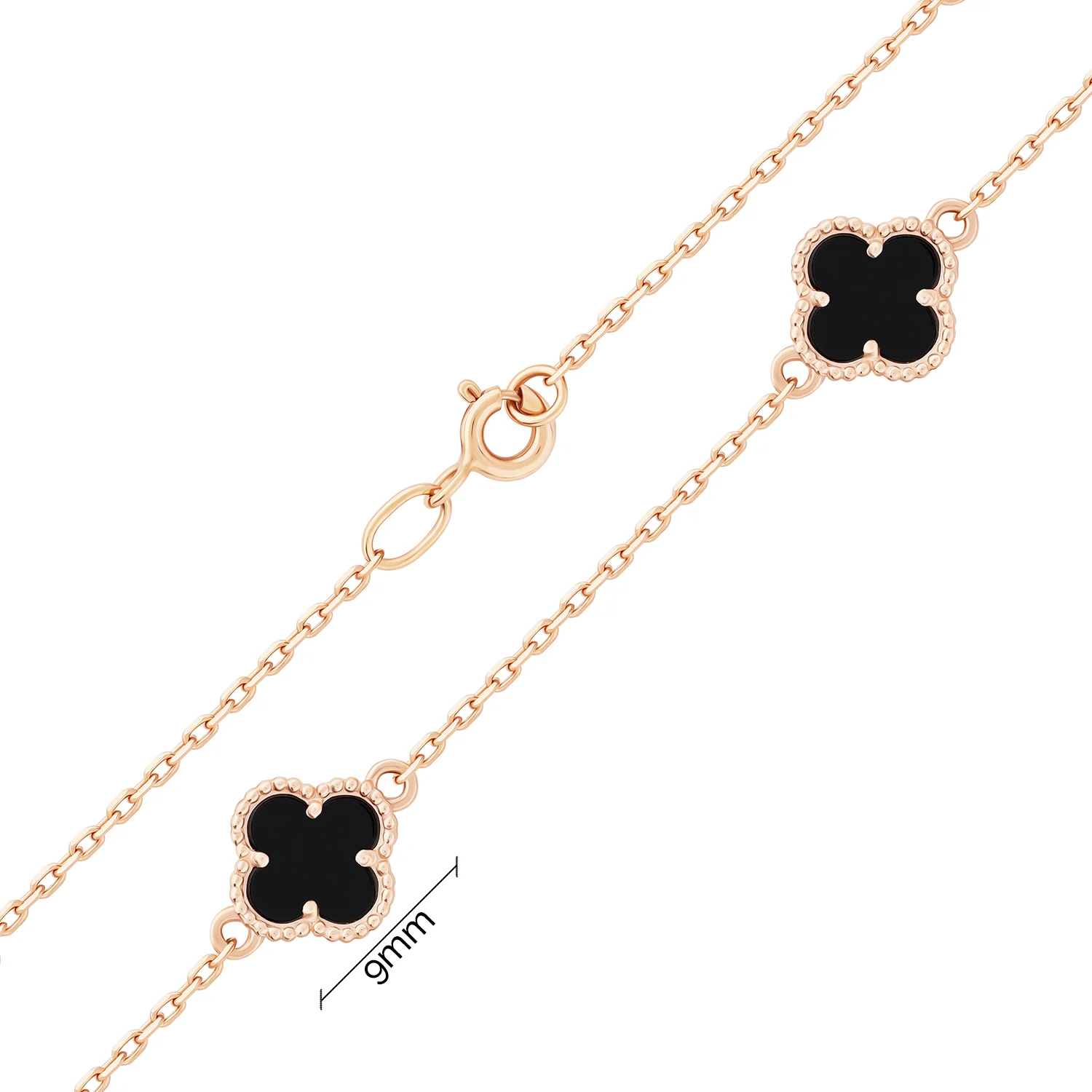 Браслет "Клевер" из красного золота с ониксом в якорном плетении - 1747727