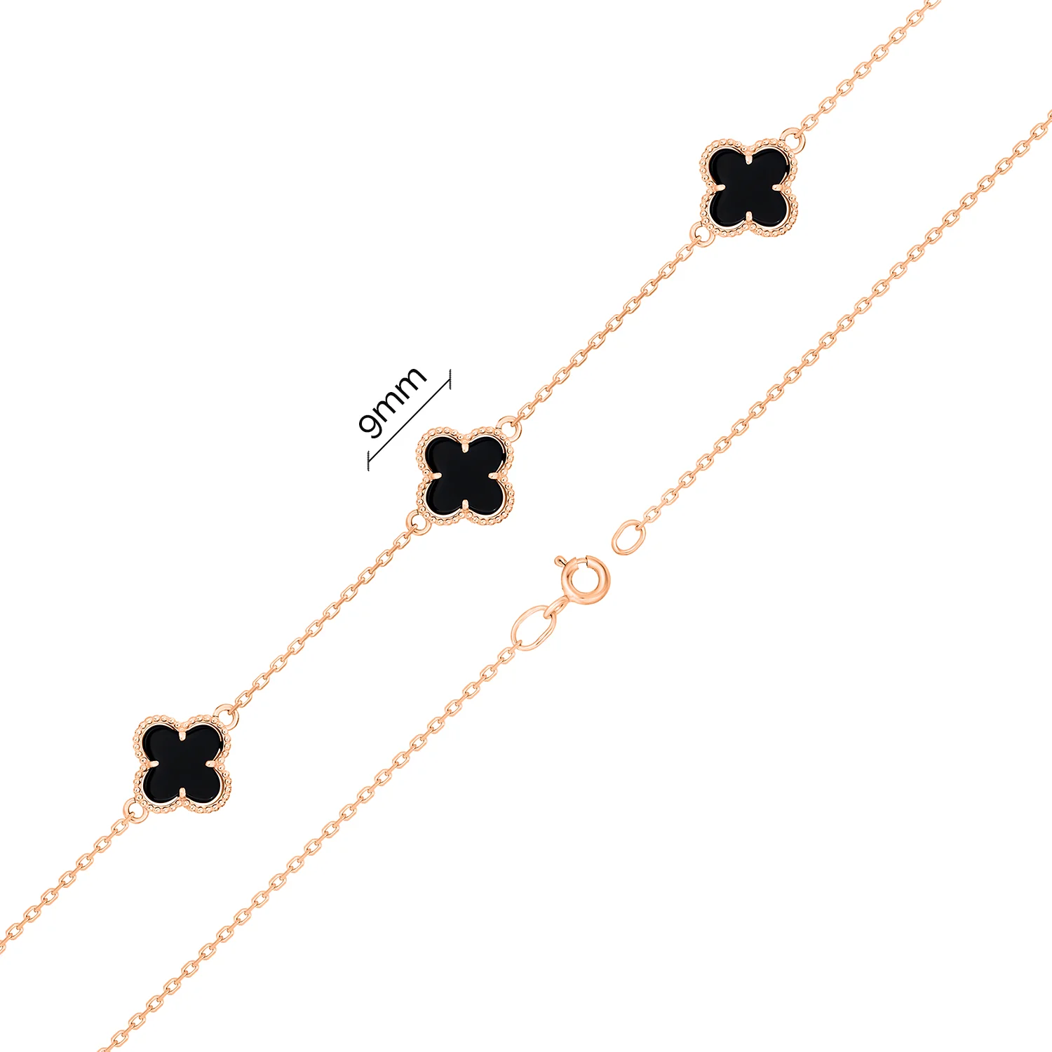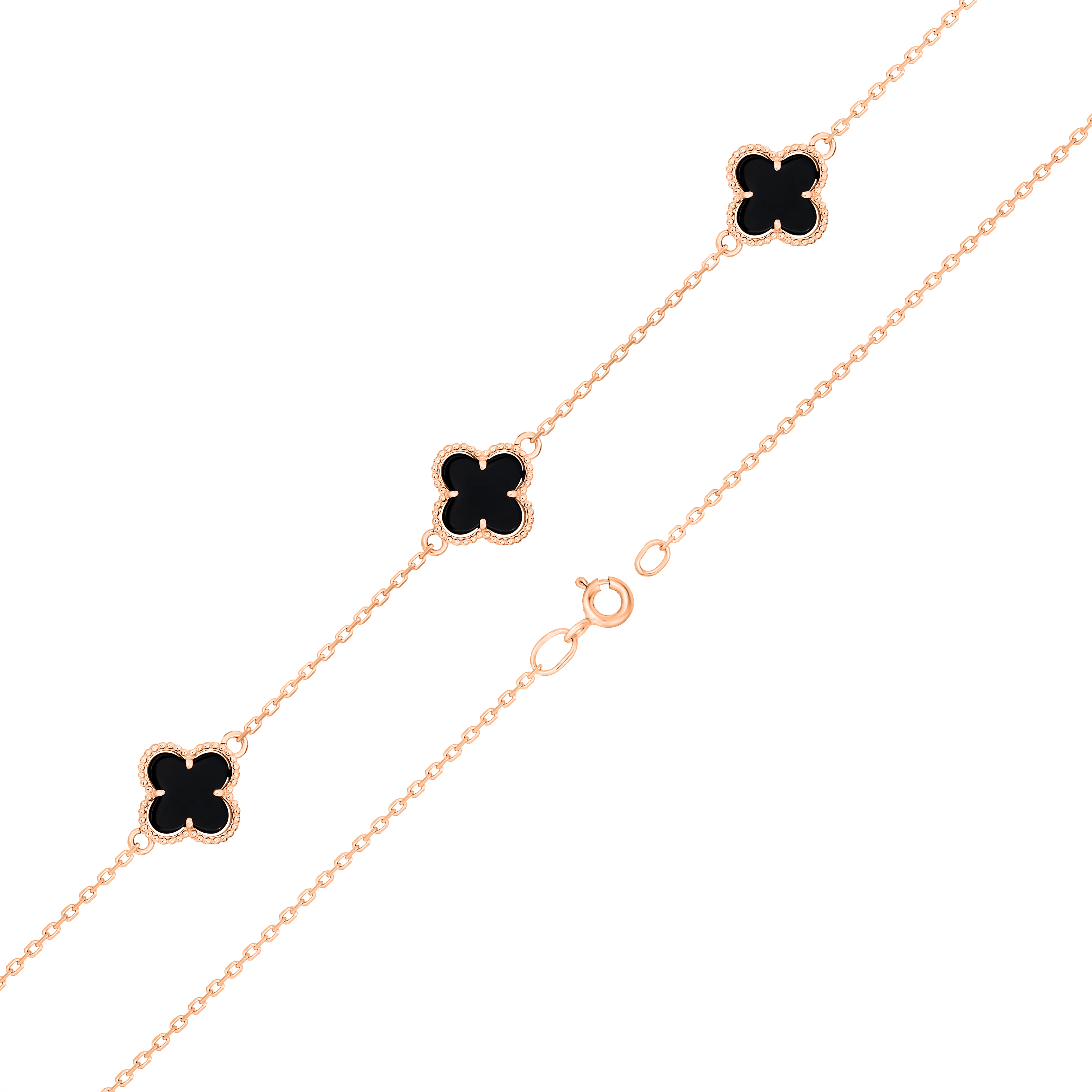 Браслет "Клевер" из красного золота с ониксом в якорном плетении - 1747727