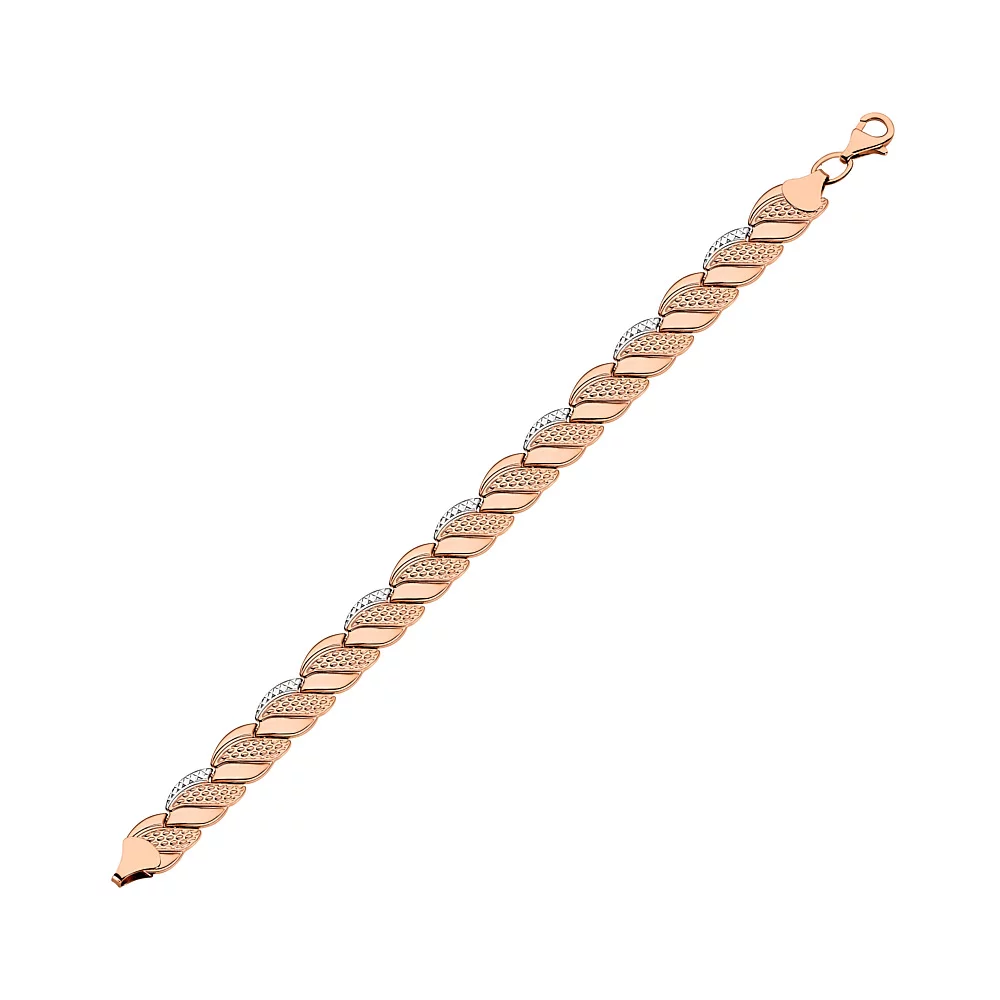 Массивный браслет из красного и белого золота "Love" плетение ролекс - 1602877