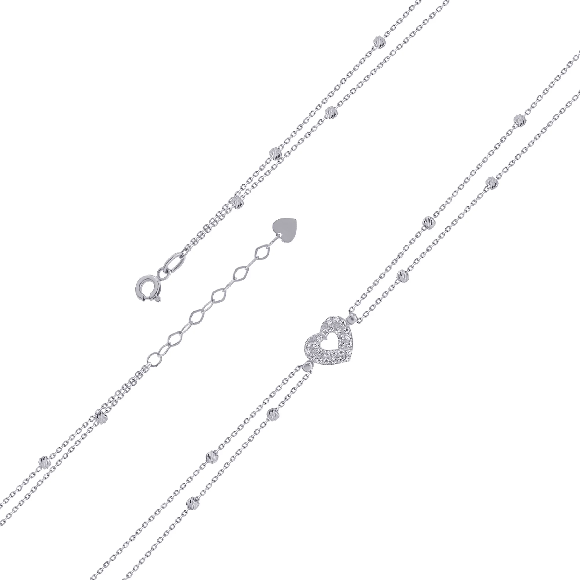 Браслет из комбинированного золота "Сердце" с алмазной гранью, с двойным плетением и фианитами - 1745554