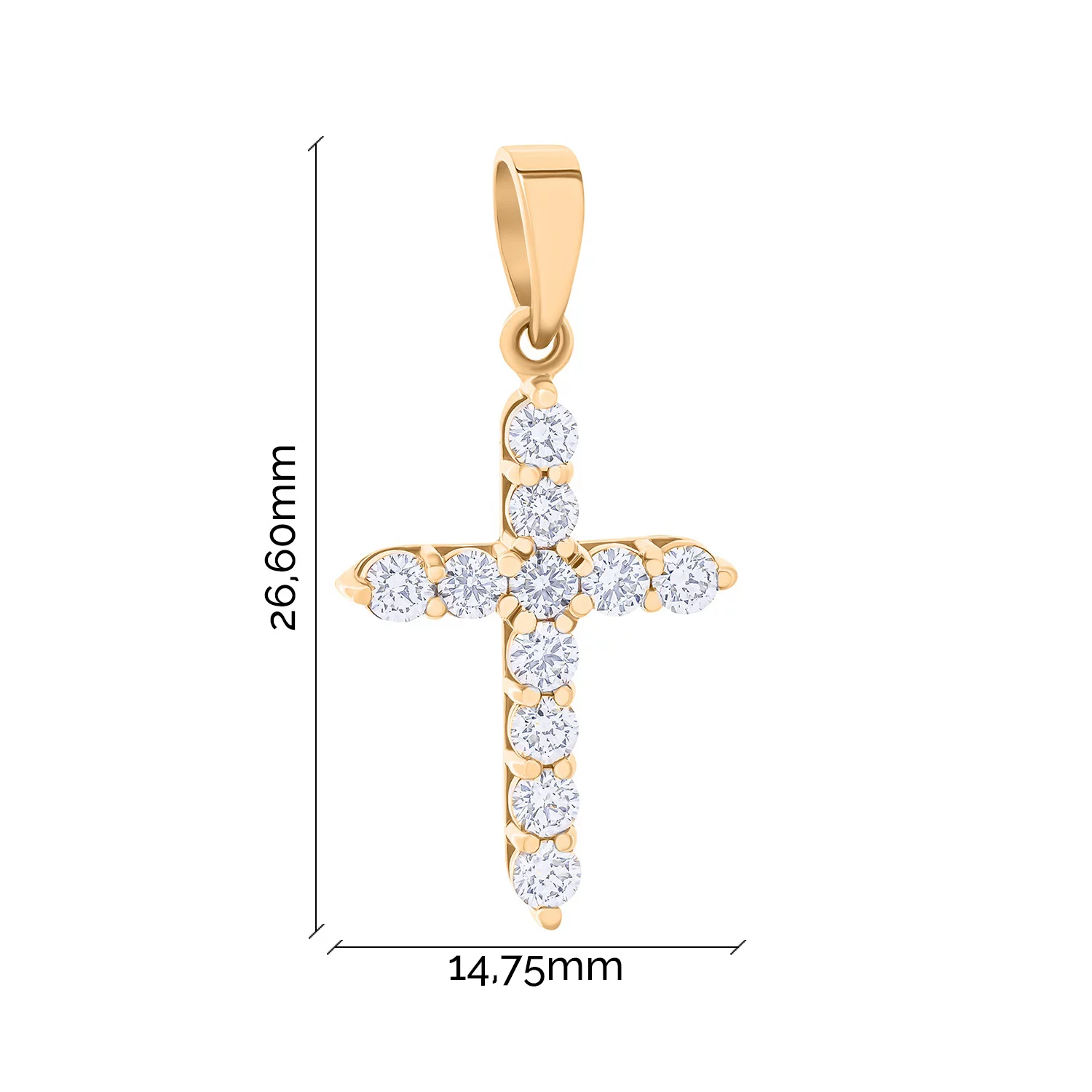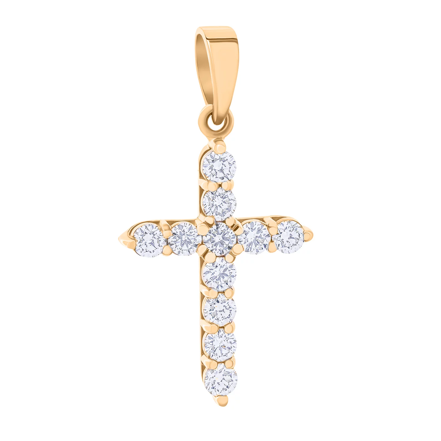 Золотой крестик с дорожкой фианитов - 1703793