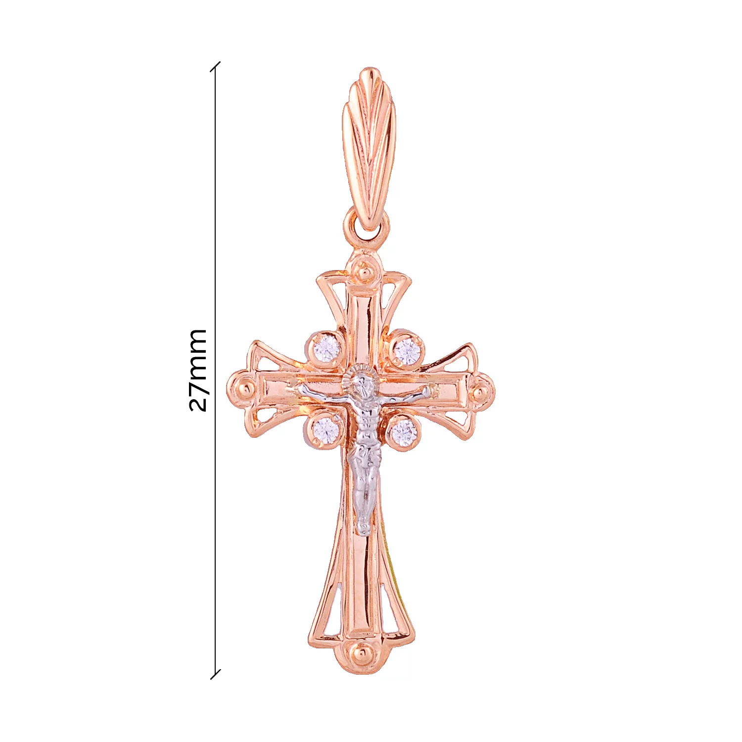 Крестик "Иисус Христос" в комбинированном золоте с эмалью и фианитами - 1951075