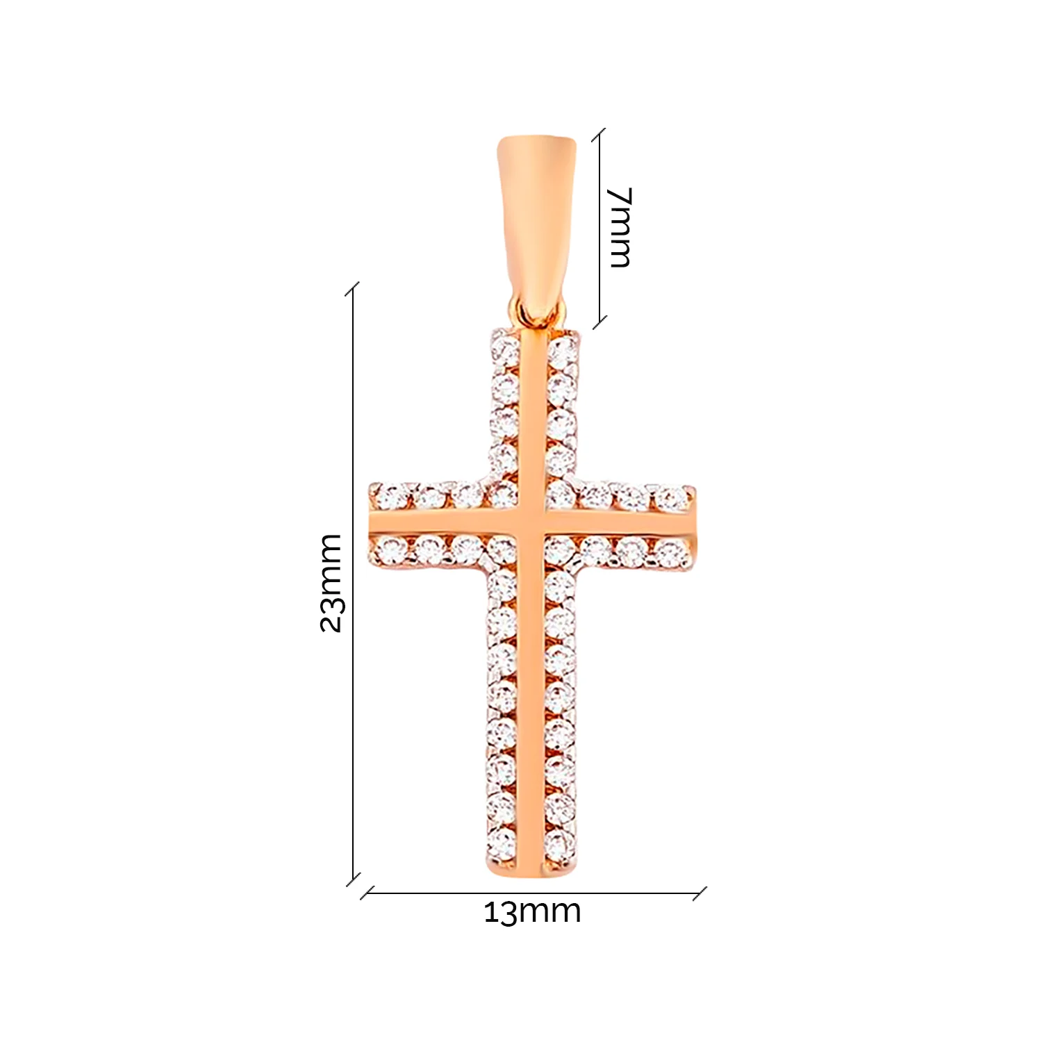 Крестик с фианитами в красном золоте - 1408026